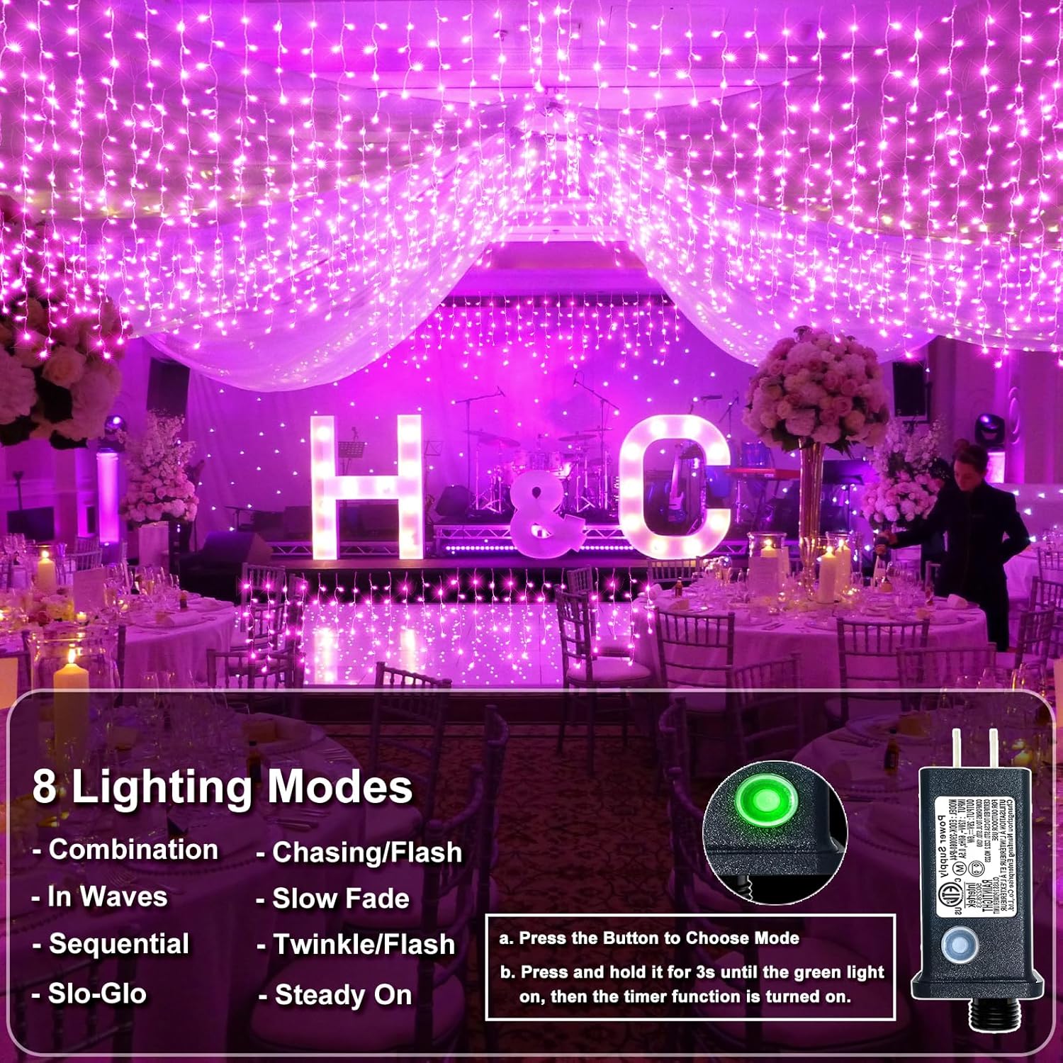 Icicle Christmas Lights Outdoor, 66FT 640 LED Icicle Lights for Outside with 8 Modes Timers, Waterproof Plug in Twinkle String Light for House Yard Eave Garden Party Holiday Decorations, Pink