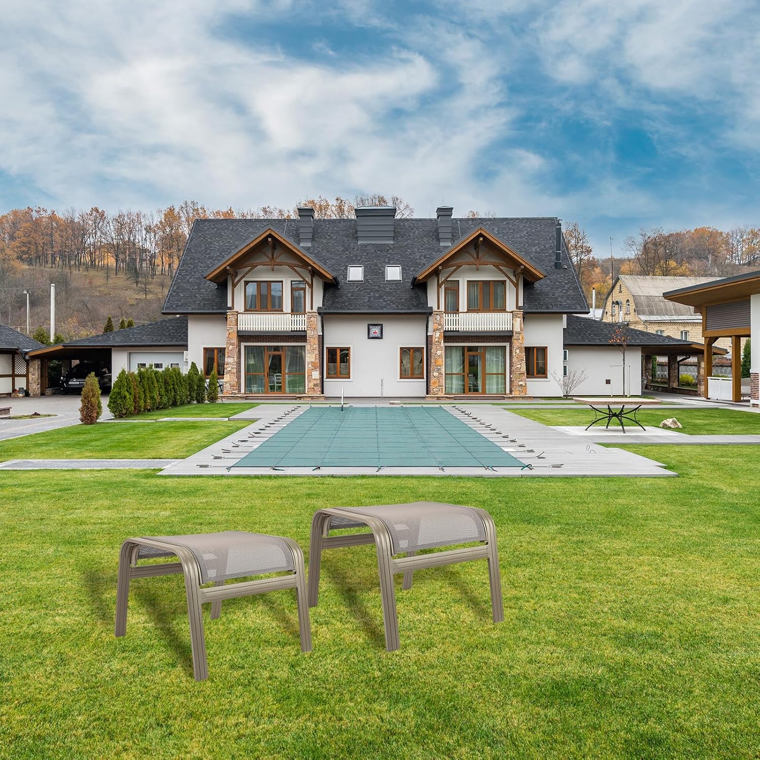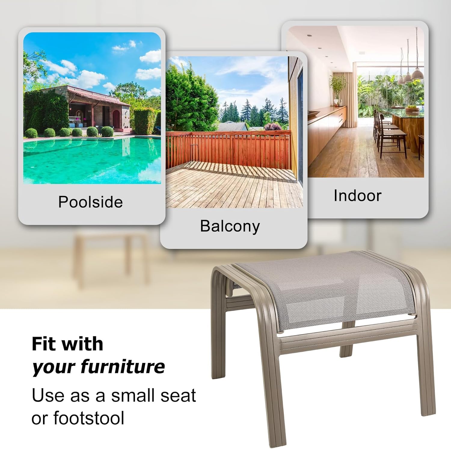• Solid Frame & Textilene Fabric-Structure of the patio ottomans are made of sturdy aluminum and resin textliene, so the ottomans are stable and resilient.In addition, the powder coated surface can prevent chair from rusting for long term use.