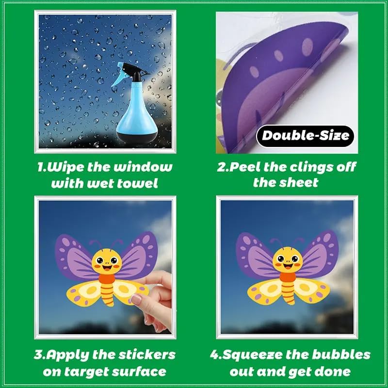 • [Vibrant Decor:] This set includes multiple beautiful cling window stickers featuring flowers, butterflies and other spring/summer motifs for an instant decorative pop of color and nature-inspired charm.