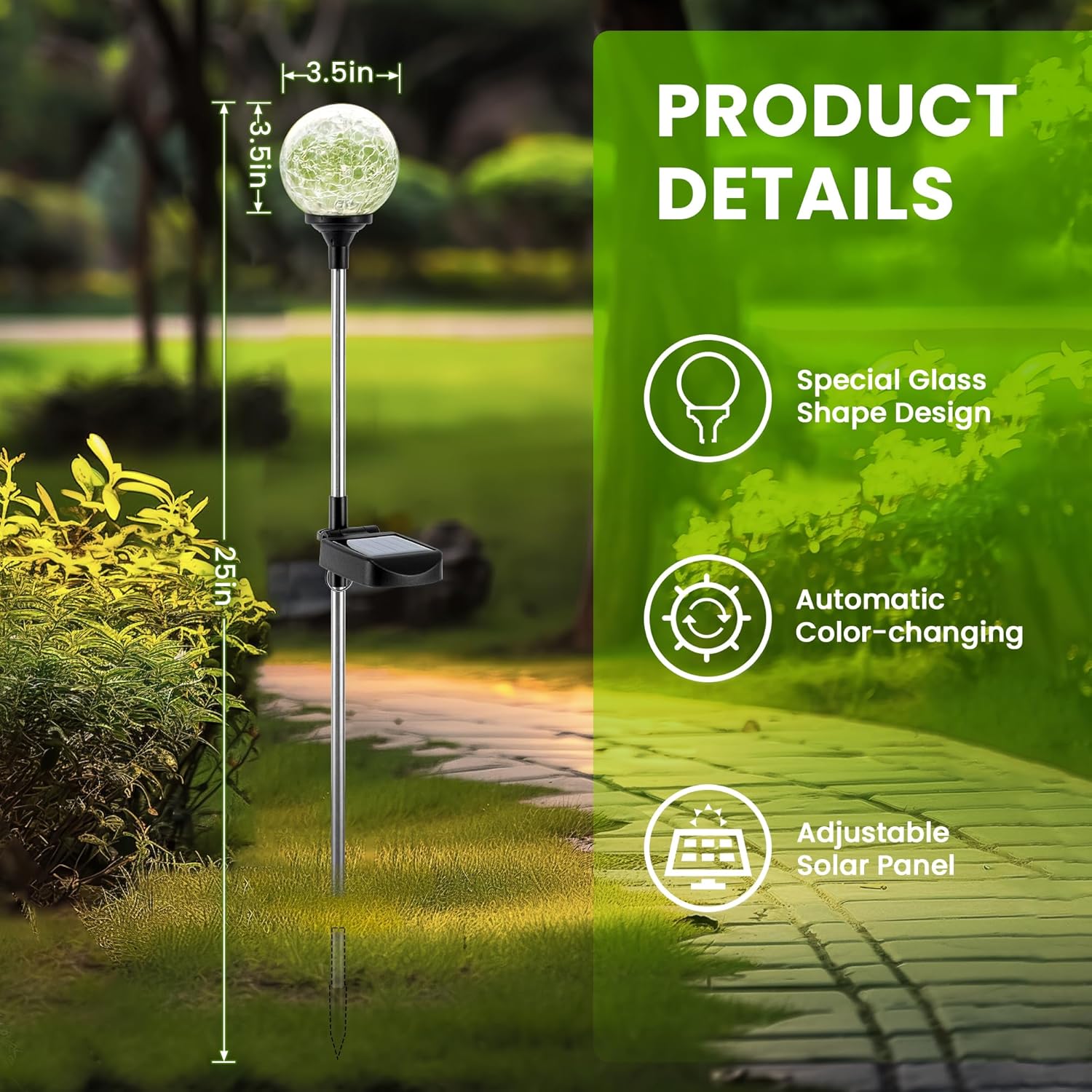 Gigalumi Solar Garden Lights 6 Pack, Solar Globe Lights Outdoor Waterproof, Solar Lights Outdoor Decorative for Yard, Multi-Colored Changing Garden Globes Cracked Glass Ball with LED Lights
