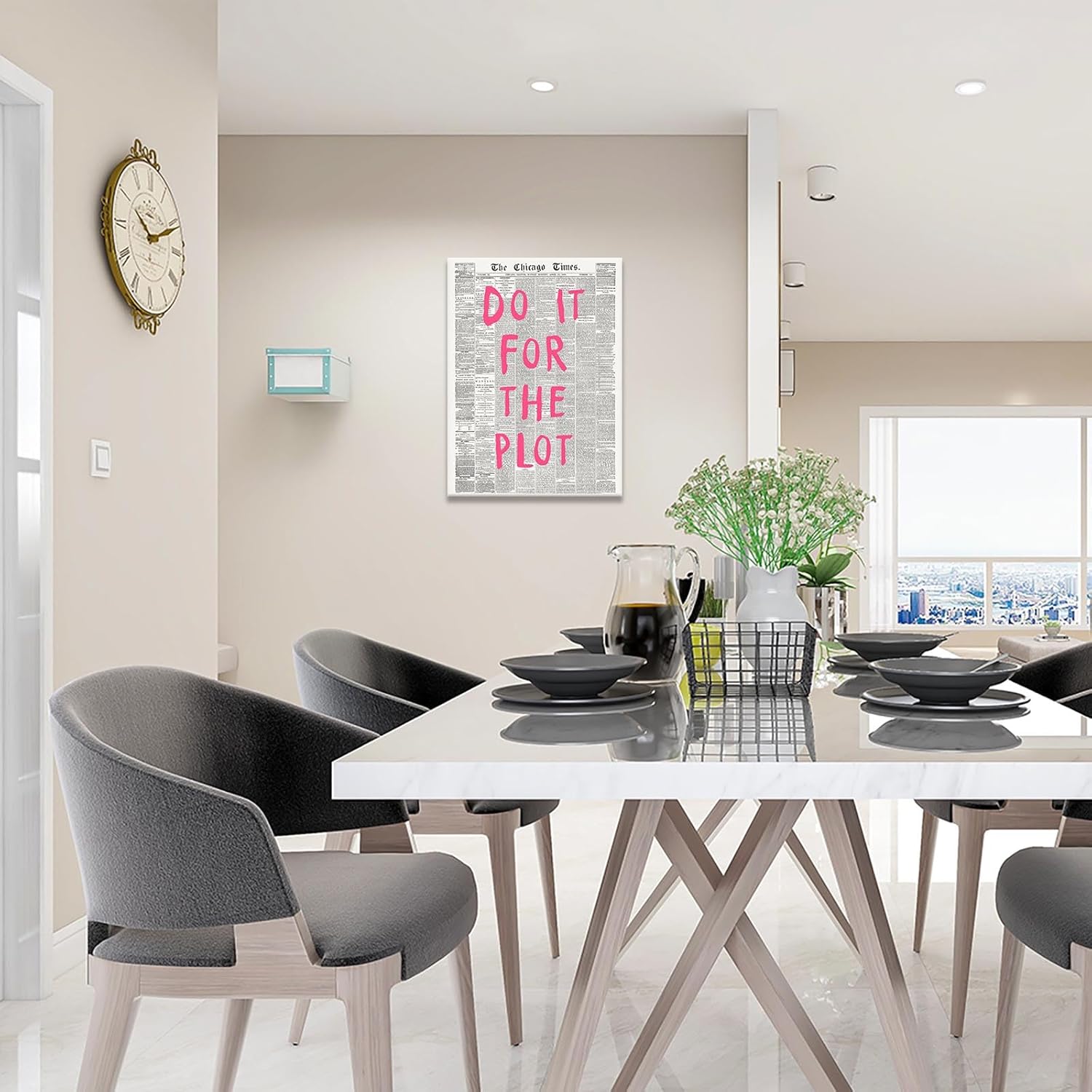 Liyark Retro Black And White Chicago Newspaper Poster Pink Trendy Preppy Apartment Art Motivational Affirmation Do It For The Plot Prints For Home Bedroom Living Room Wall Decor 24x36in Framed
