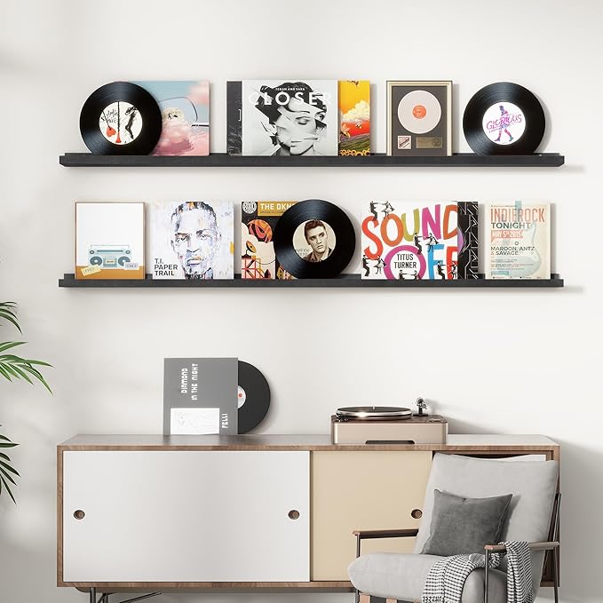 • Picture Ledge Shelves: The ledge in front of the wall shelves could prevent your precious items from falling off. And we handcraft a shallow groove on each book shelf to protect your items from sliding forward. Each floating shelf is 5 inches in depth with a 1.25 inches lip, you can put photos, pictures, DVD players, videos, books, toys, and some other knickknack on this beautiful display wooden shelf