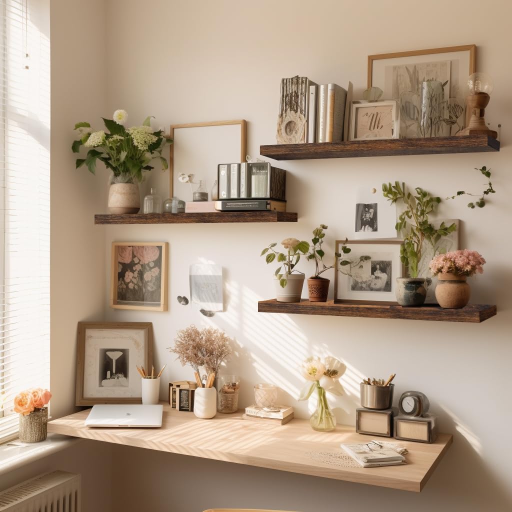 • Minimalist Aesthetic: Embrace a clean, minimalist look that complements any interior style. Showcase your favorite books, decor, or keepsakes while maintaining a clutter-free environment. Elevate your decor with these functional and stylish shelves.