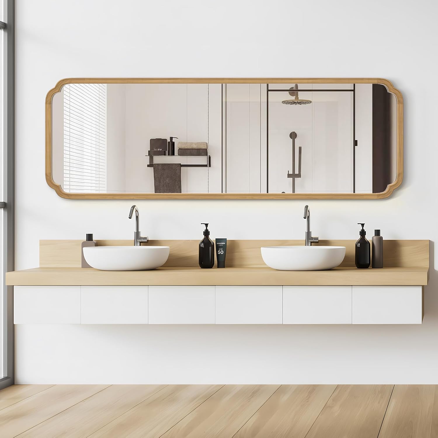 WallBeyond Full Length Mirror Wall Mounted 71"x24", Rustic Wooden Frame Floor Mirror, Large Full Body Mirror for Bedroom, Leaning or Hanging Against Wall (Naturl Solid Wood)
