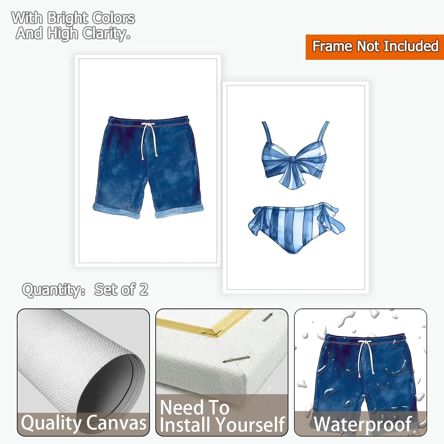 Liyark Set of 2 Retro Navy Blue And White Swimsuit Art Posters Beach Bathing Suit Prints Painting Beach House Wall Art Coastal Wall Decor Pictures For Bathroom Home Decoration 24x36in Unframed