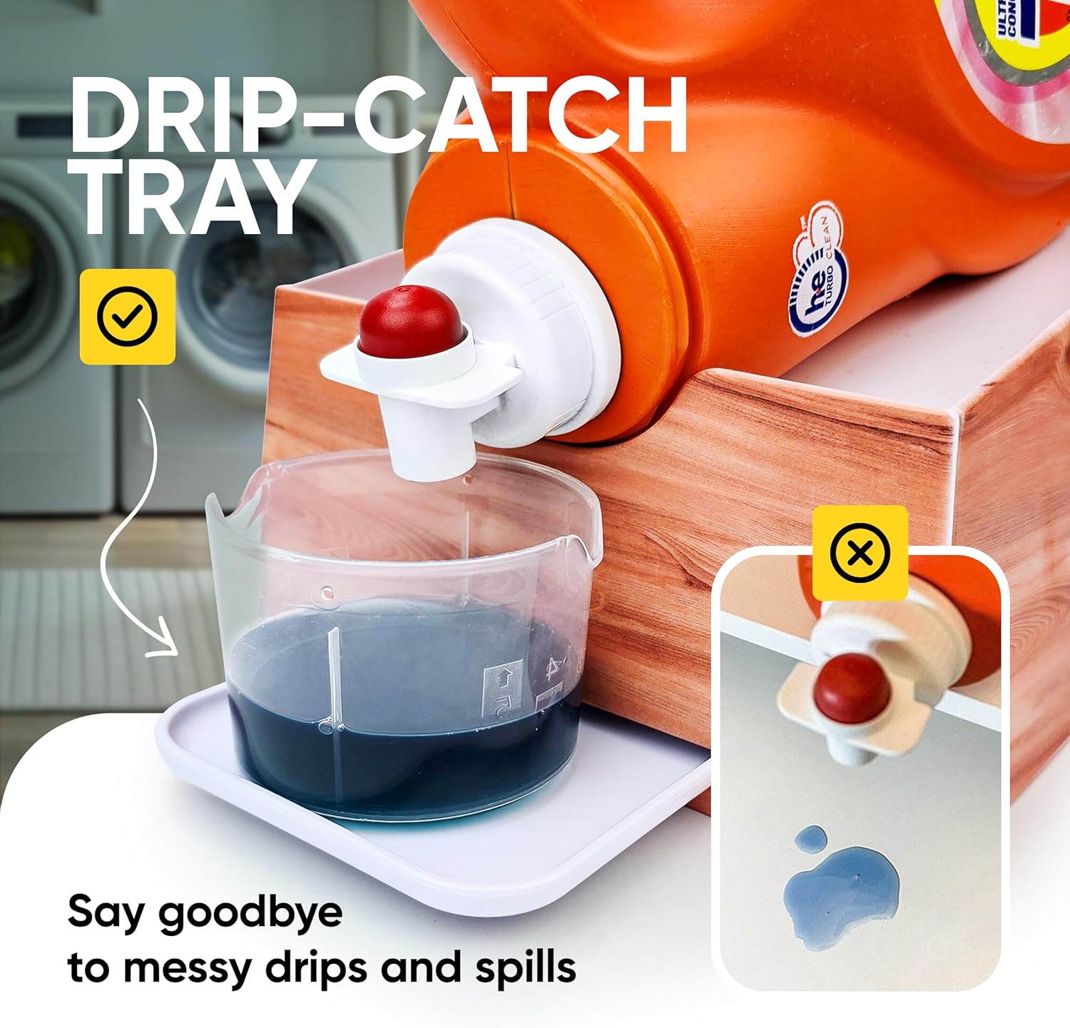• Patents Pending Angled laundry detergent drip catcher, no need to tilt or lift the bottle. Downward slope makes soap pour out easily