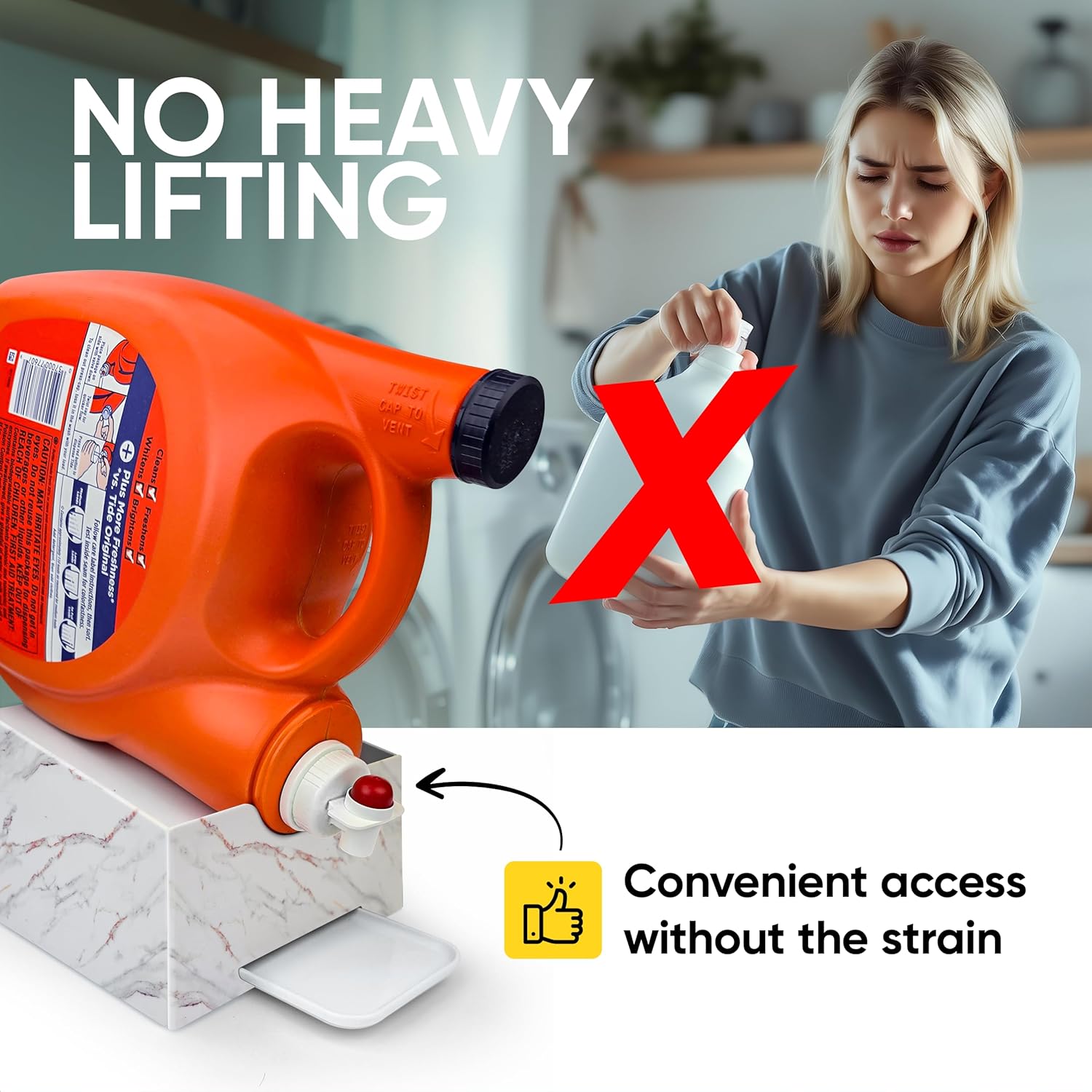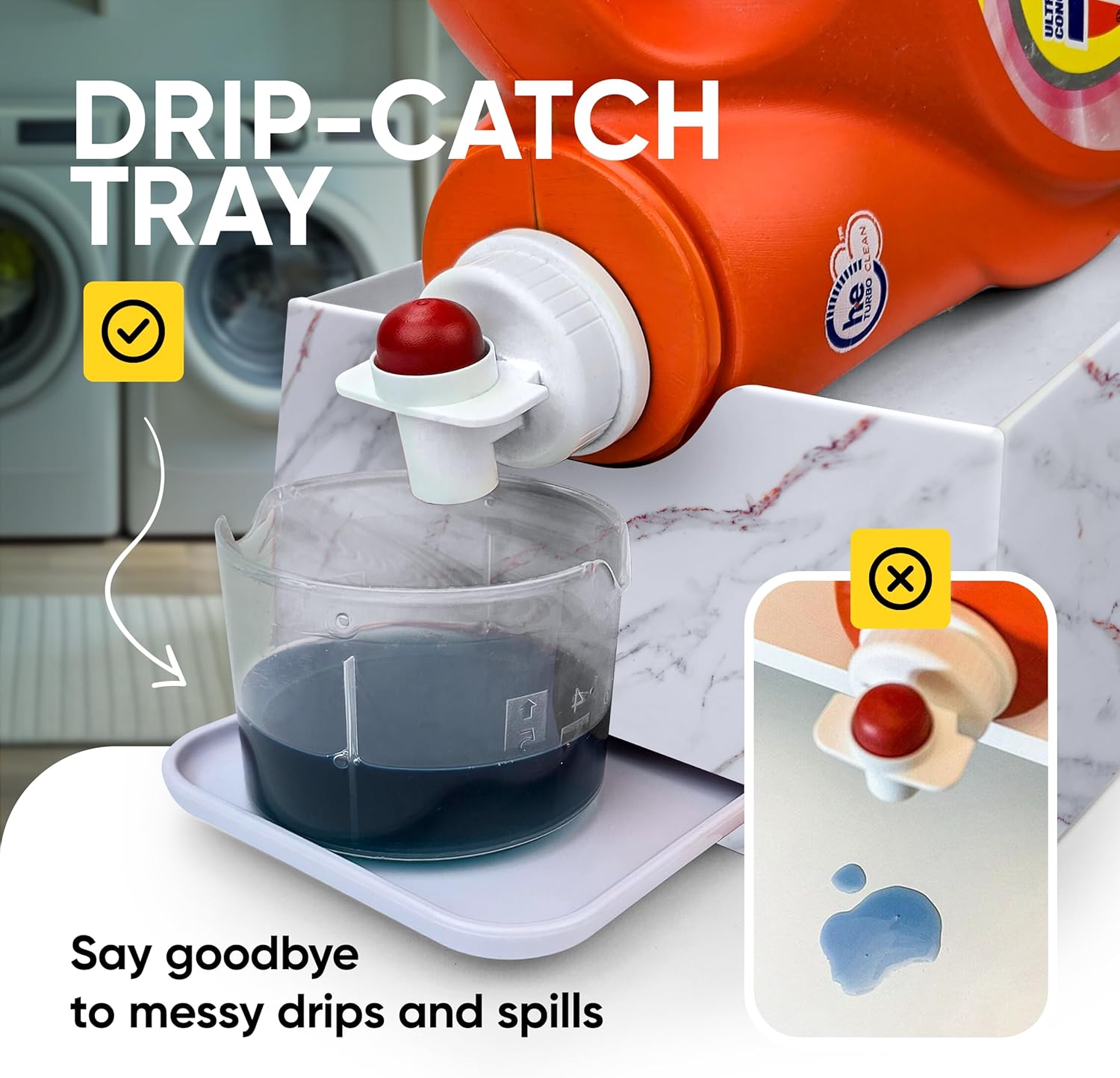 • Patents Pending Angled laundry detergent drip catcher, no need to tilt or lift the bottle. Downward slope makes soap pour out easily