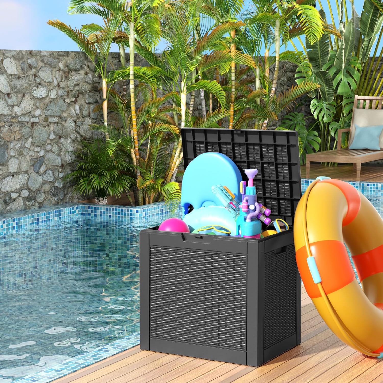 • ENHANCED DESIGN: The exterior of this outdoor storage bin is designed with a floral pattern, making it a great accent for patios, gardens, courtyards, porches and poolside.