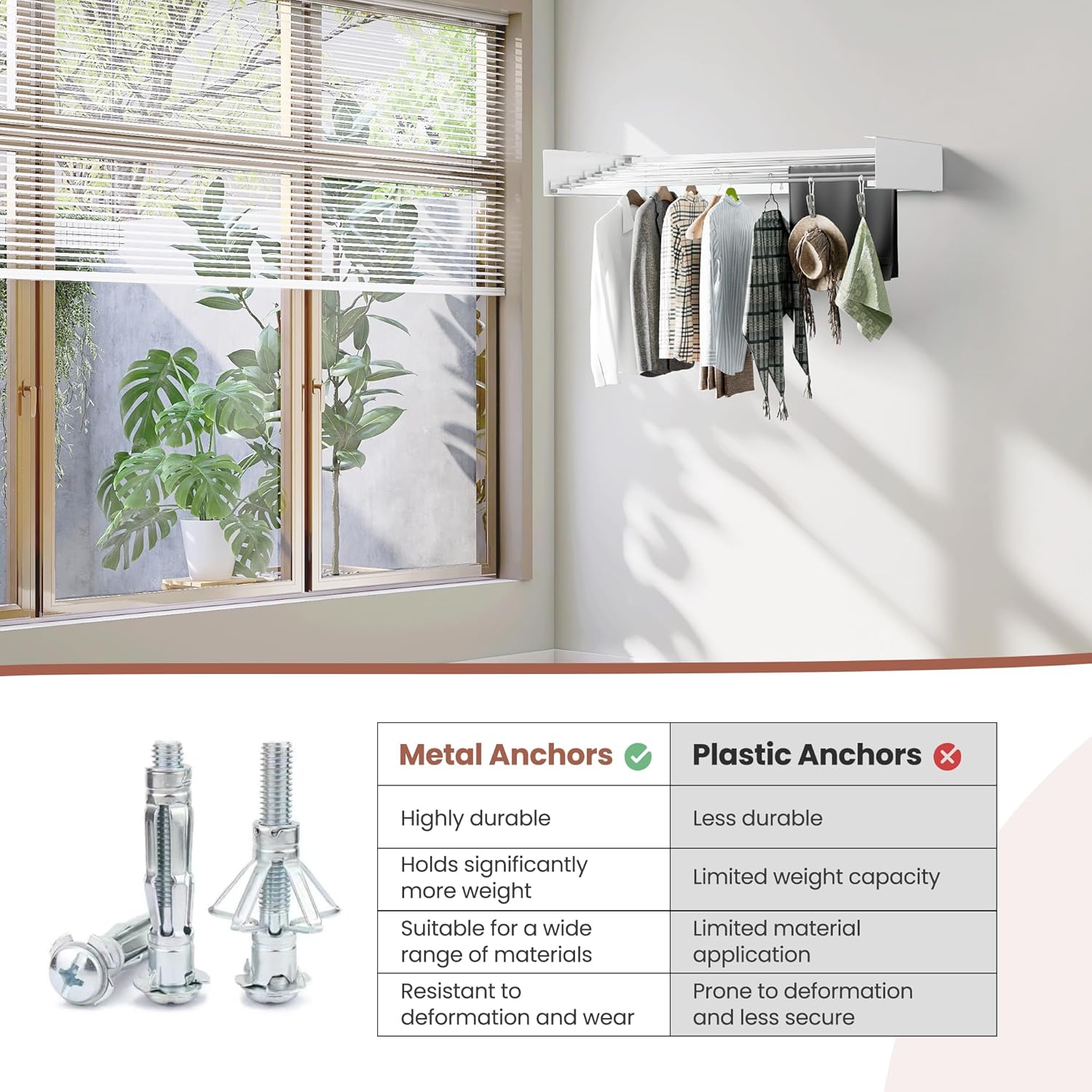 • Foldable Space-Saver – Sleek wall-mounted drying rack folds flat against the wall when not in use, freeing up floor space in laundry rooms, patios, or balconies.