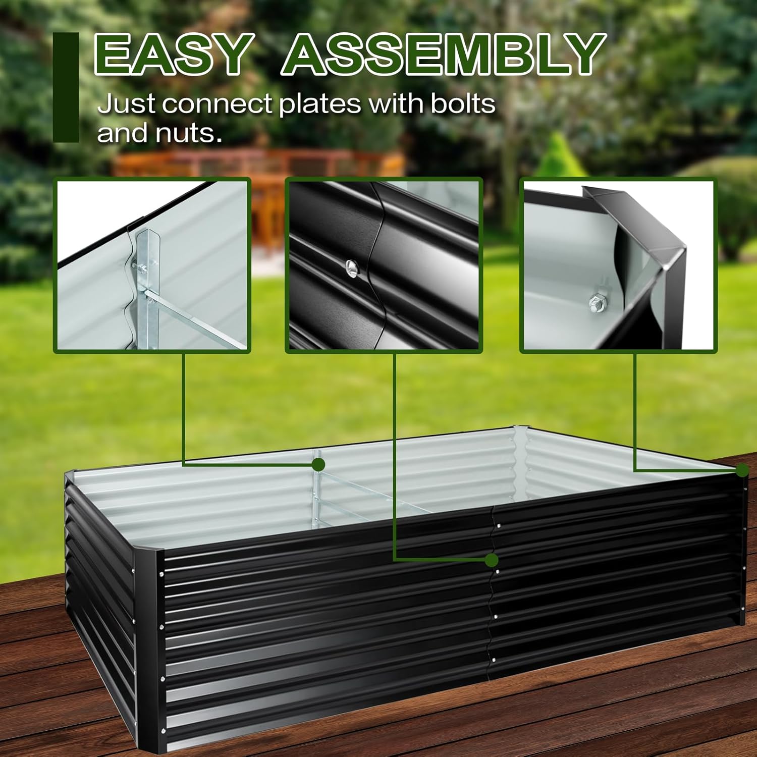 • Easy to install:This raised garden bed is designed in a simple but stable structure, which is very easy and quick to put together. Necessary hardware and instruction are included.