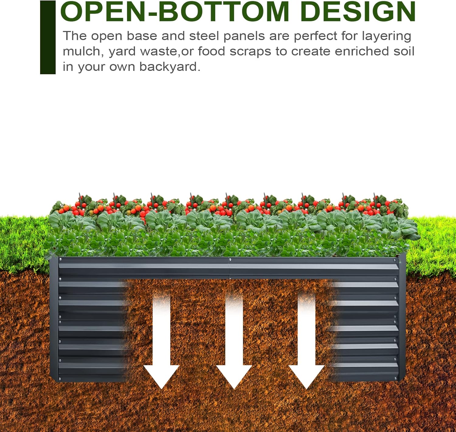 • Versatile and Adaptable: This raised garden bed kit is suitable for growing a wide range of plants, vegetables, and herbs, making it an ideal choice for novice and experienced gardeners alike. The galvanized steel design is suitable for use in any climate or growing condition.
