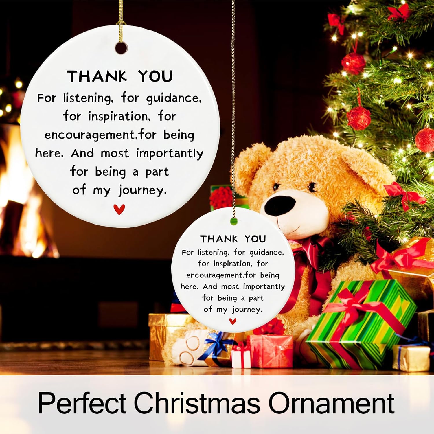 Thank You Christmas Ornament for Teacher Appreciation Gifts, Thank You Nurse Gifts,Goodbye Gift, Ceramic Keepsake Thanks Ornament with Ribbon and Gift Box