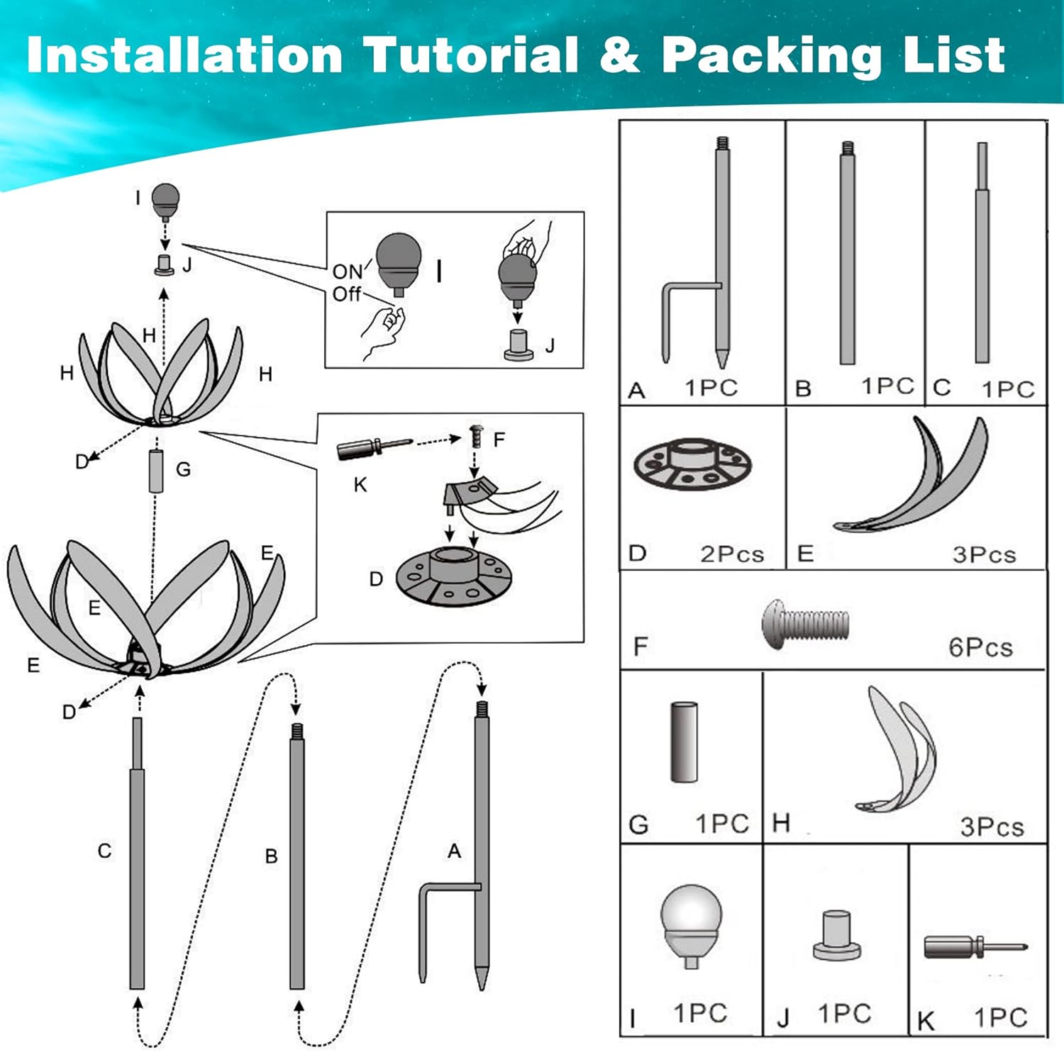 • Easy to Install: Large wind spinner is very easy to install, just twist all the accessories to install. The metal pole, the angle of the petals can be adjusted, you can also adjust the length of the pole and the degree of bloom of the flowers.