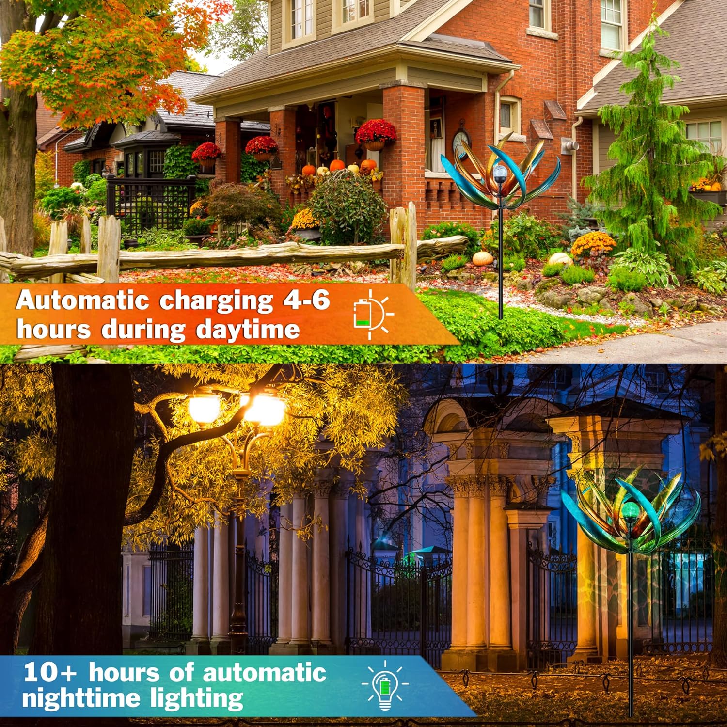 • Versatile Aesthetic Upgrade: Transform your outdoor oasis into a curated art display! This wind spinner’s dynamic color transitions (2700K warm white to rainbow hues) complement seasonal themes – pair with string lights for festive holiday gatherings or position near water features for serene daytime reflections. Its kinetic design attracts hummingbirds while doubling as a sophisticated nighttime beacon for pathways