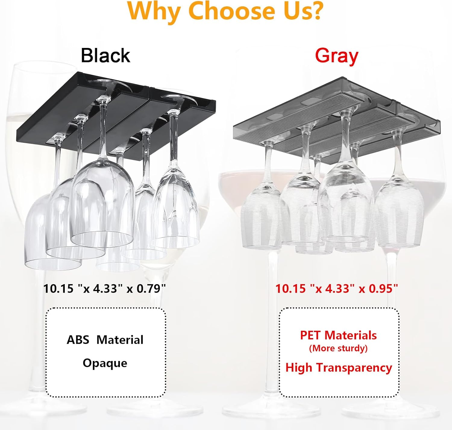 2 Pcs Wine Glass Holder,Stemware Rack Punch-free Hanging Under Cabinet for Bar,Kitchen and Restaurant (Grey)