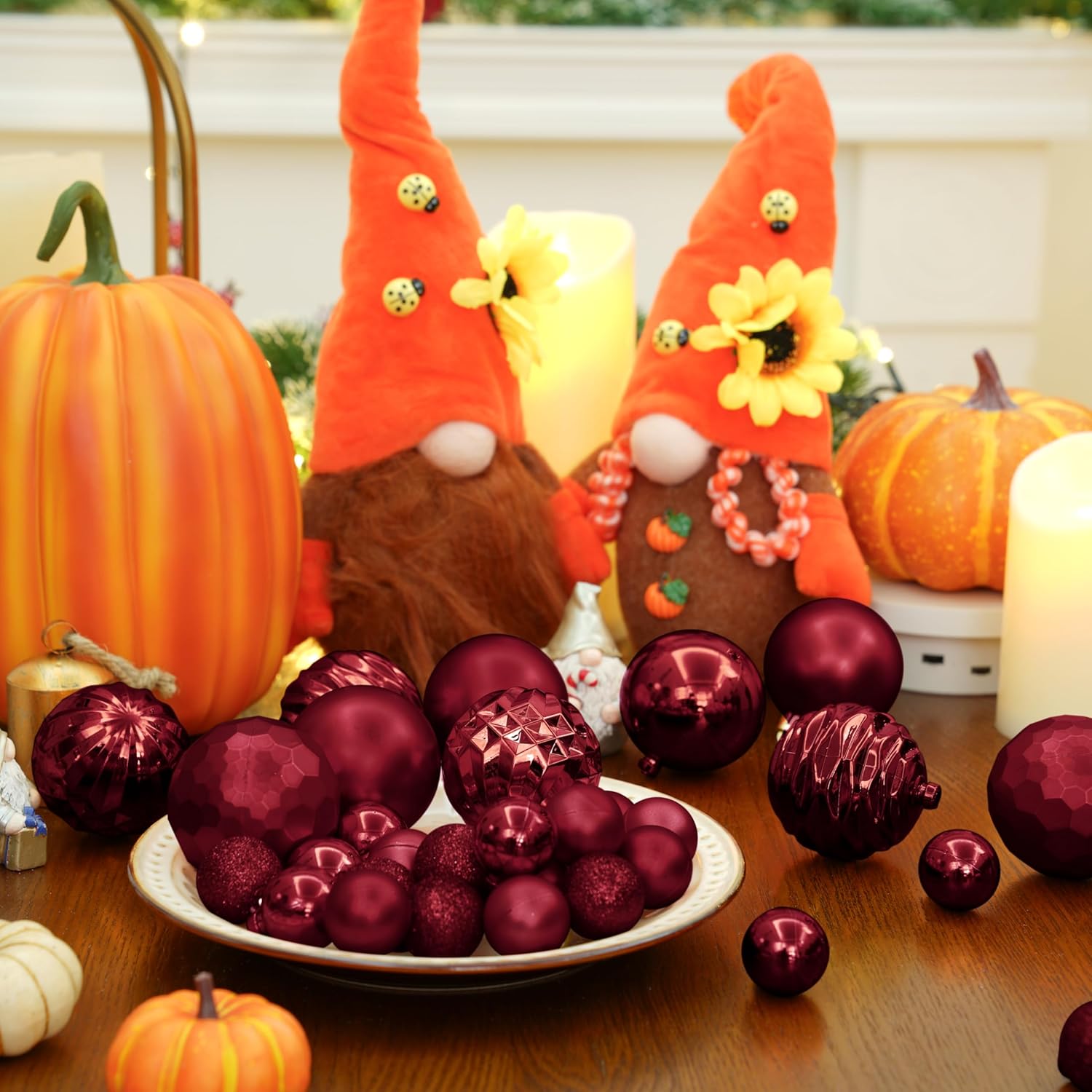 XmasExp 24ct Mini Christmas Ball Ornaments Shatterproof Christmas Ornaments Set Decorations for Xmas Tree Balls 30mm/1.18" (Burgundy)