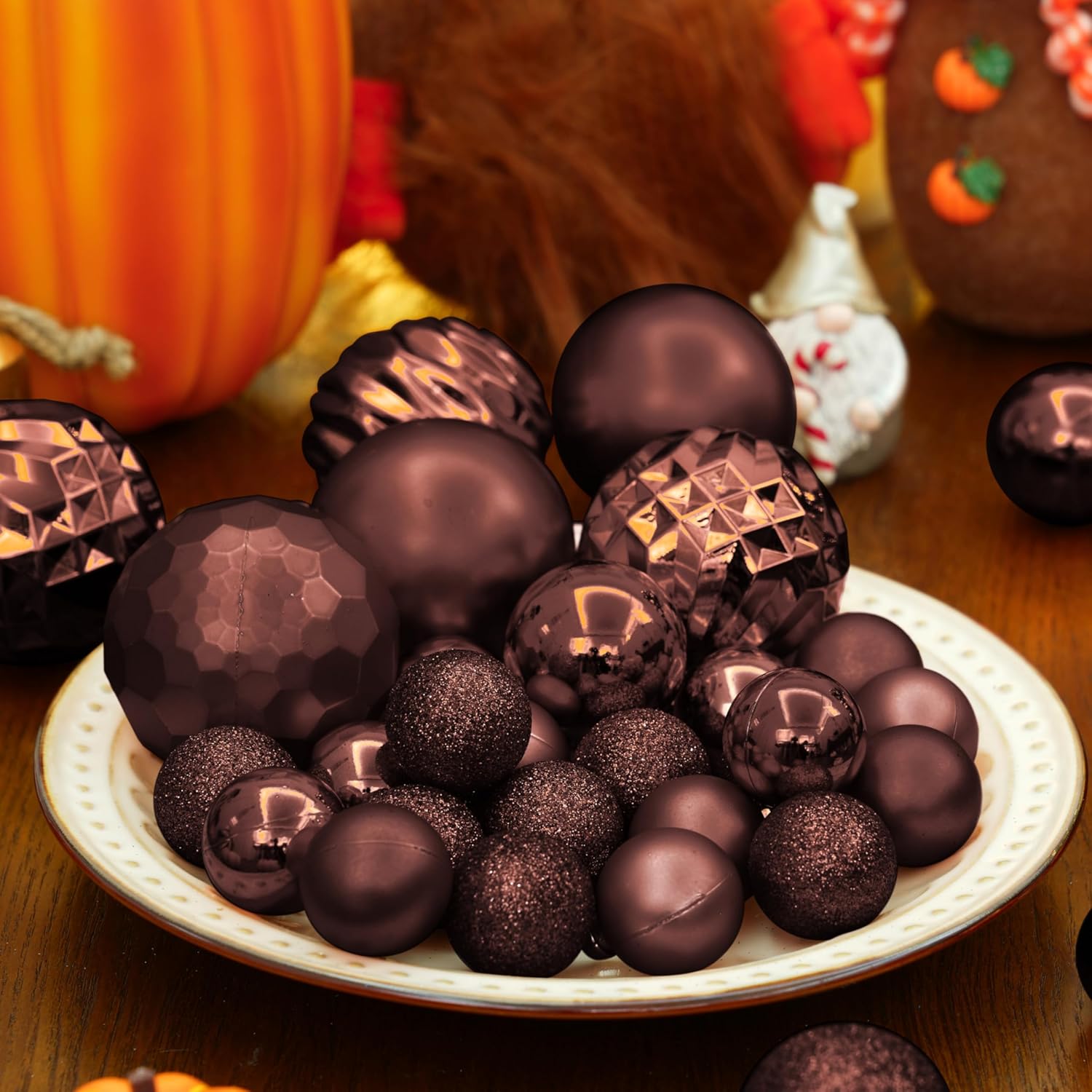 XmasExp 24ct Mini Christmas Ball Ornaments Shatterproof Christmas Ornaments Set Decorations for Xmas Tree Balls 30mm/1.18" (Brown)