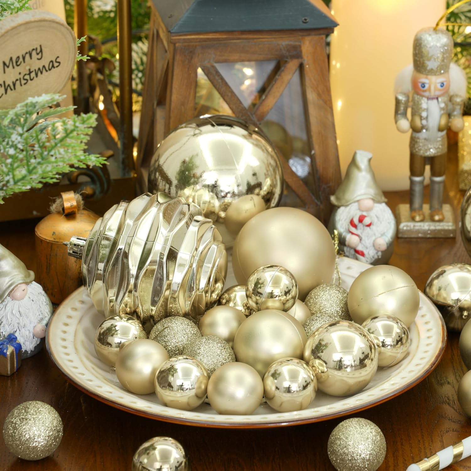 • KID&PET FRIENDLY - All Christmas ball ornaments are made of Plastic. Even they are broken, debris will not hurt your children or pets comparing to fragments of glass.It is safe around kids and pets.