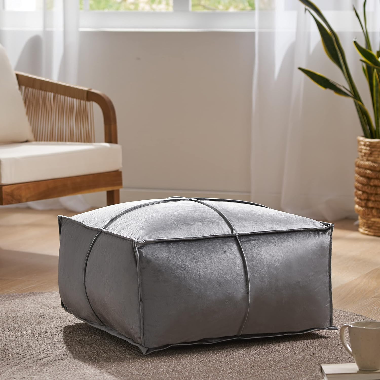 GDFStudio Modern Glam Velvet Square Pouf Ottoman Foot Stool - Bean Bag Floor Chair - Foot Rest Couch for Living Room Bedroom,Smoke,24" x 24" x 12"