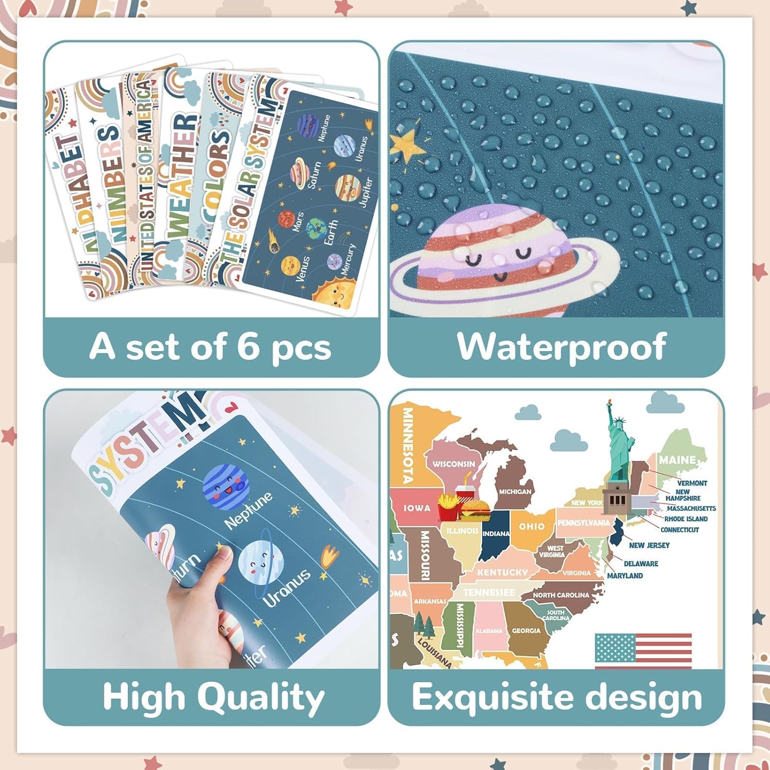 Educational Preschool Kids Placemats Set of 6 Boho Plastic Table Mats Toddler Children Montessori Place Mats for Kids Washable Holiday Desk Decoration for Indoor Outdoor Party Kitchen Dining Table