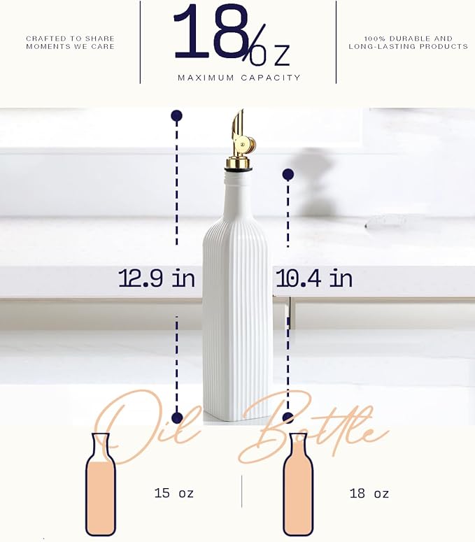 • [Elegant Design] A sleek white ceramic cooking oil dispenser with embossed stripes, creating a visually appealing and tactile experience for your kitchen or dining table