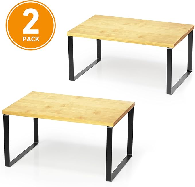 • BAMBOO SHELVES - With bamboo and metal combined, the cabinet organizer is perfect to utilize the vertical space; Also a great decorative addition or accent to any cupboard space