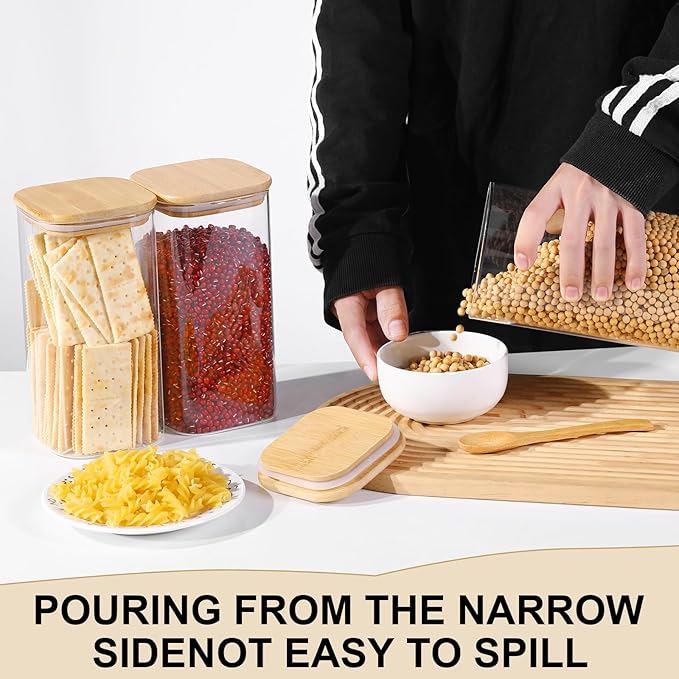• Safe to use : The glass food storage jars with bamboo lid containers is made of 2.5mm food-grade high borosilicate glass, more thicker and durable than other glass canister set, can be stackable when necessary for space saving storage or lined up in your kitchen or pantry, meeting all your storage needs and avoid the further cabinet clutter and 100% lead-free.