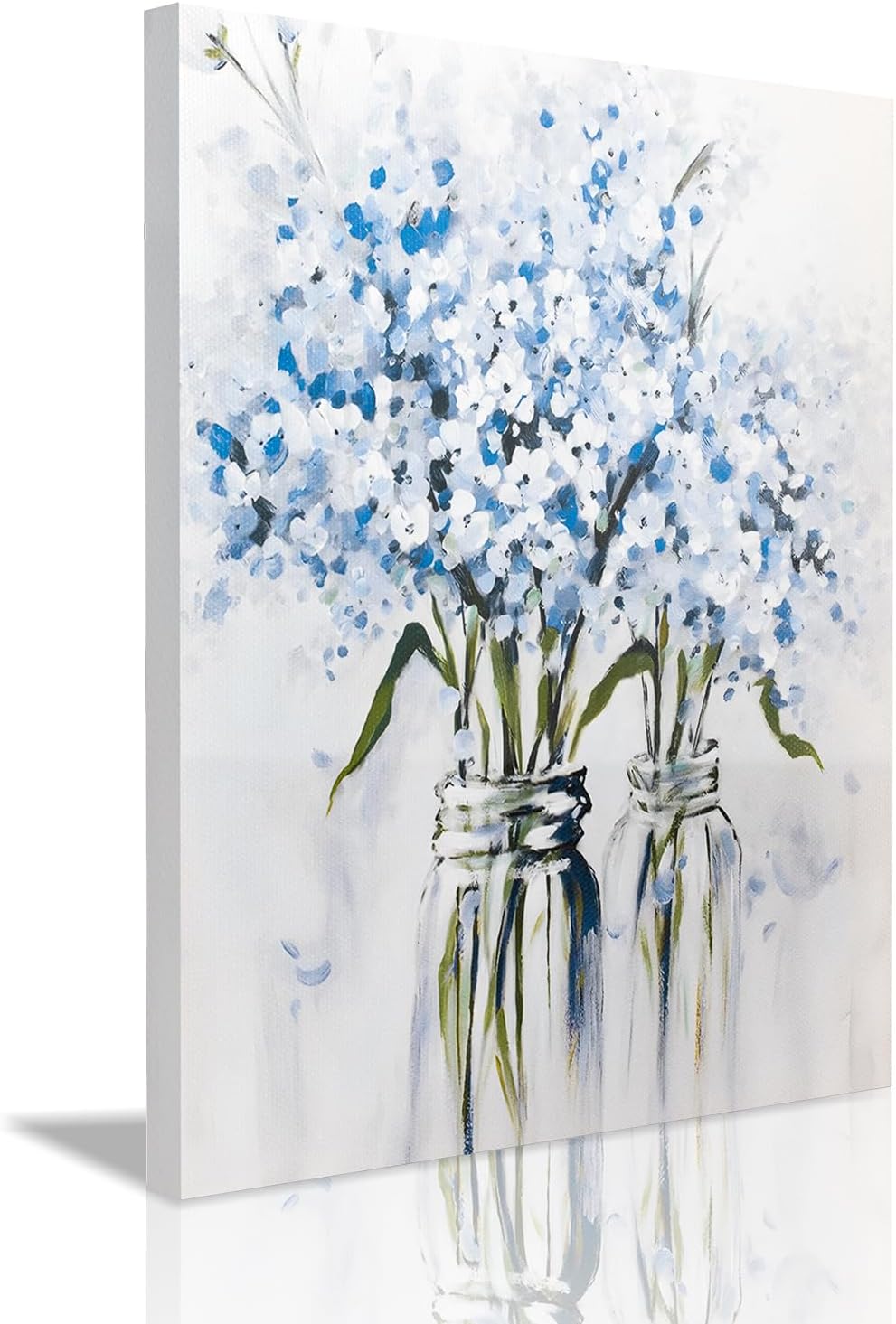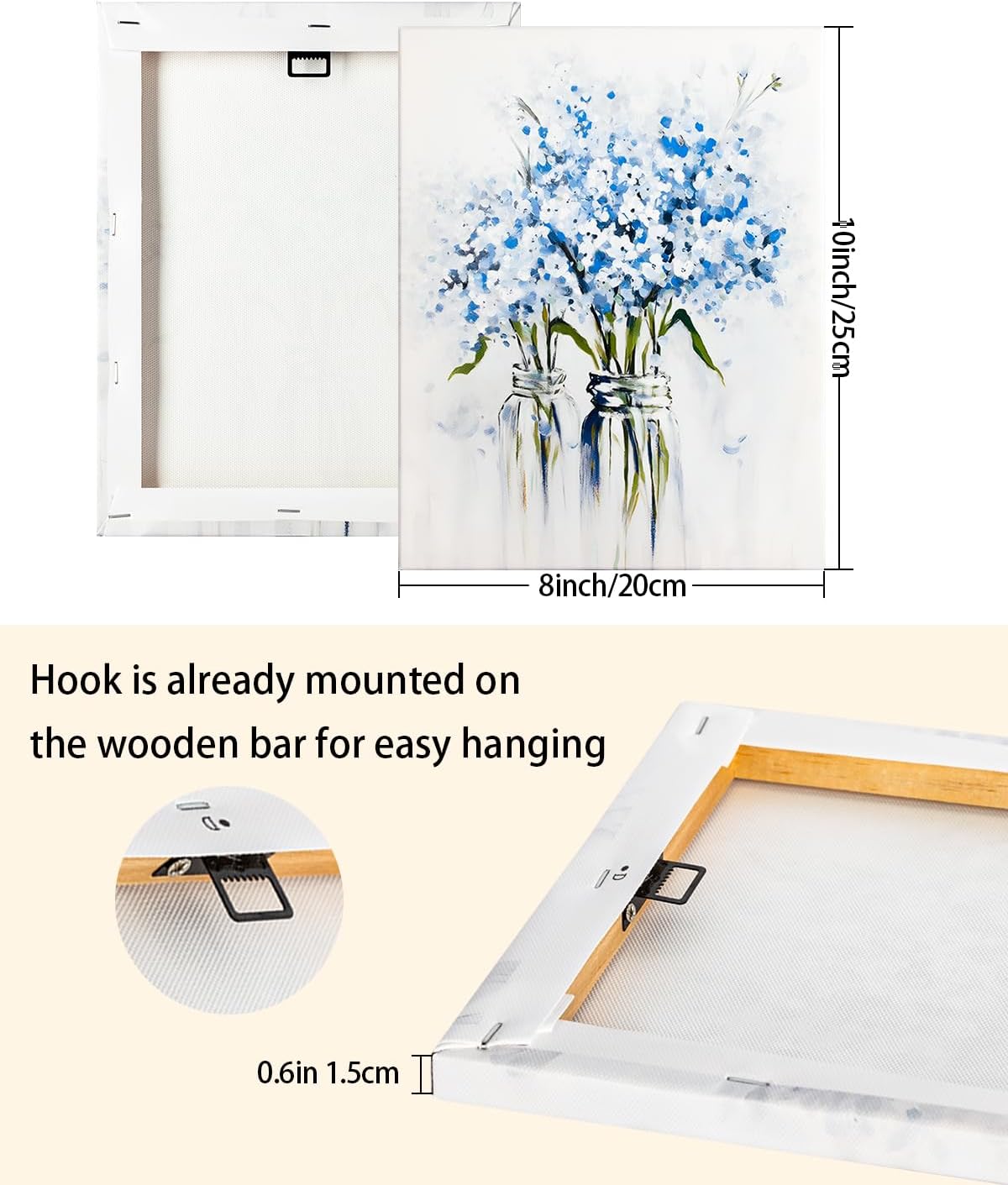 • Blue Flower Bouquet Wall Art】The abstract depiction showcases the elegance and beauty of the flowers, with soft and vibrant blue blossoms that resemble a lively painting, bringing joy and warmth to your space.