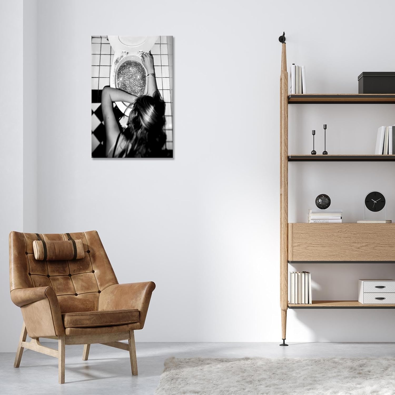Funny Bathroom Wall Art Black and White posters Bar Disco Party prints painting Girls Bathroom Canvas wall art Funky aesthetics Teen Girl Bedroom wall decor for 24x36in Framed