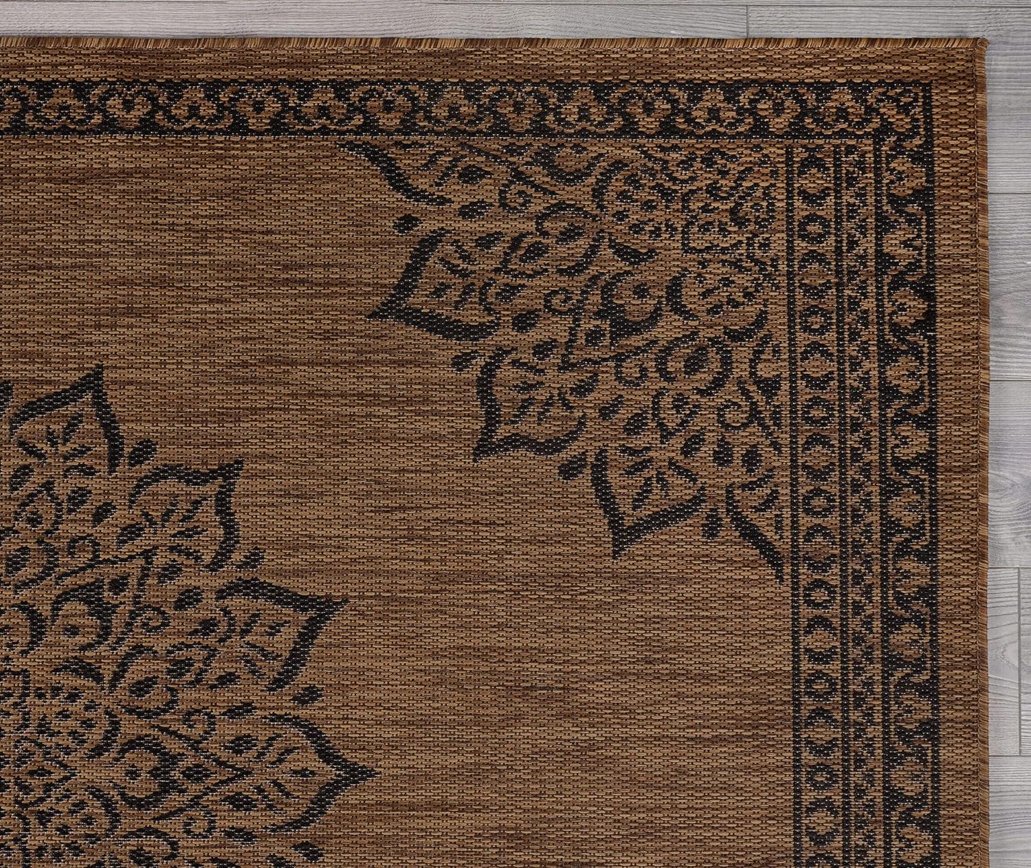 CAMILSON Outdoor Rug, 10x14 Medallion Nut Brown Black Modern Area Rugs for Large Indoor and Outdoor Patios, Kitchen and Hallway Mats, Washable Porch Deck Outside Carpet (Nut Brown Black, 10 x 14)