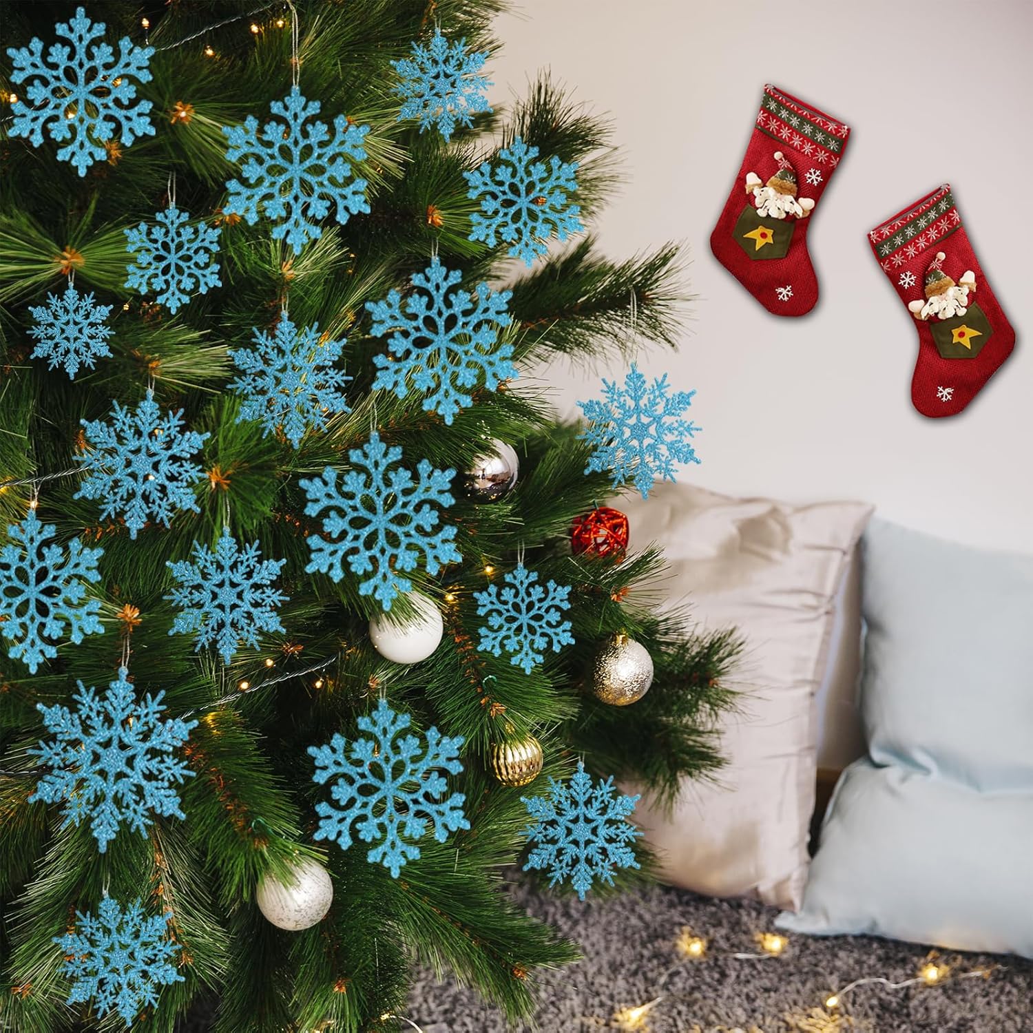 • CHRISTMAS TREE SNOWFLAKES: Featuring sparkly glitters on the surface, these light blue snowflakes tree ornaments add much more sparkle to your Christmas tree decorations, various sizes give a nicer variety on the tree, just let it snow.