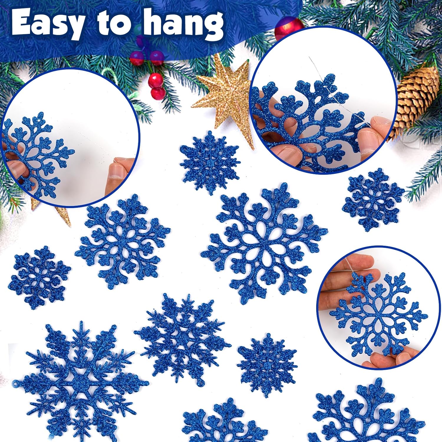 • DESIGNED TO HANG: Big Christmas snowflake ornaments have hole at top for easy hanging except some that are only with the hollow design but they're also able to be hung easily with the string. included.