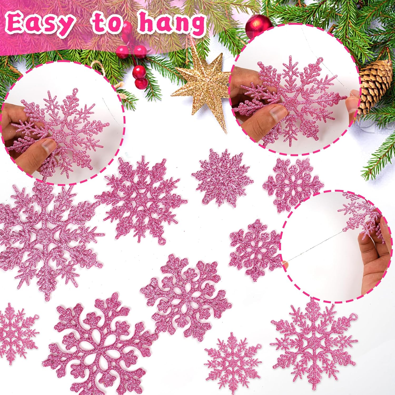 • CHRISTMAS TREE SNOWFLAKES: Featuring sparkly glitters on the surface, these light pink snowflakes tree ornaments add much more sparkle to your Christmas tree decorations, various sizes give a nicer variety on the tree, just let it snow.