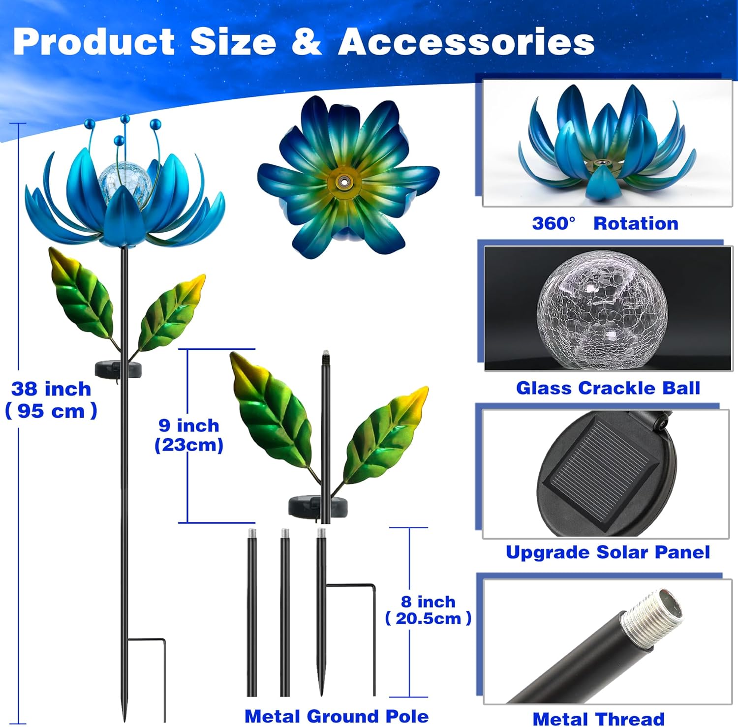 • 【 Solar Wind Spinners Outdoor 】Purple lotus flower lights wind spinner using waterproof LED burst spherical glass flower lights.It is beautiful and cute, it can decorate any place in the garden, it is beautiful during the day and at night, you can easily place and move it to any place you like!