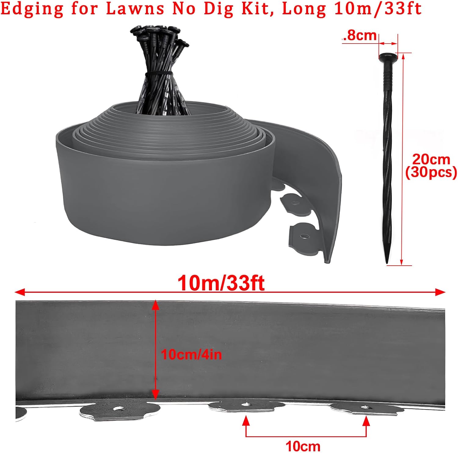 • Edging for Landscaping: 10m long/33ft, 10cm/4in tall, DIY the garden edging to create a beautiful landscape courtyard. We also offer 10m long/33ft, 5cm/2in tall, different height & color.