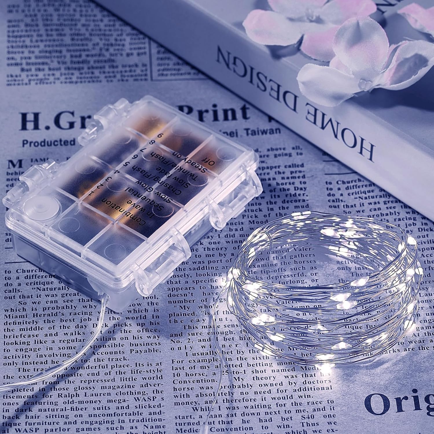 1 Pack 16.4 Ft. Battery Operated Outdoor String Lights with Remote & Timer, LED Cool White Fairy Lights, Waterproof Twinkle Lights for Bedroom, Dorm, Mason Jar, Wedding, Party, Christmas