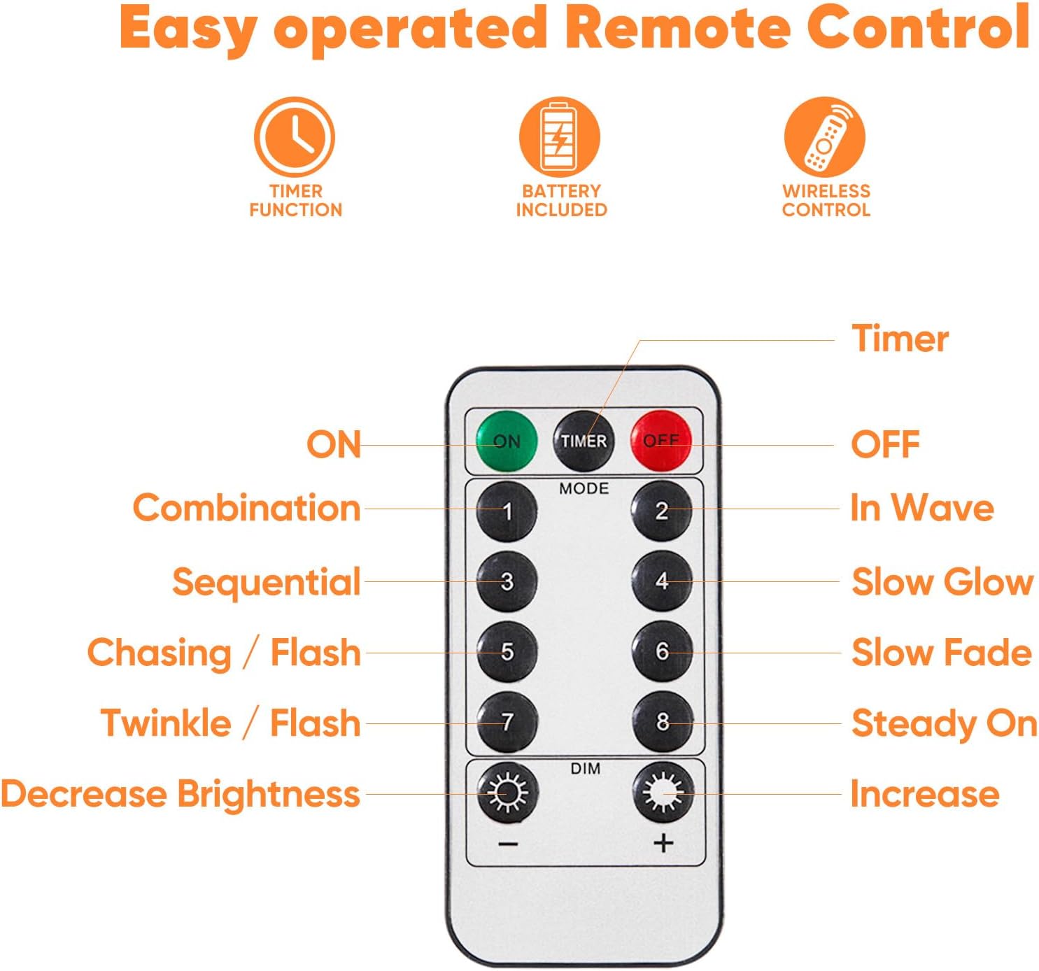 • Remote Control Convenience: Easily switch between 8 unique lighting modes and adjust brightness with the included remote; features timer for automatic 6 hours on, 18 hours off cycle.