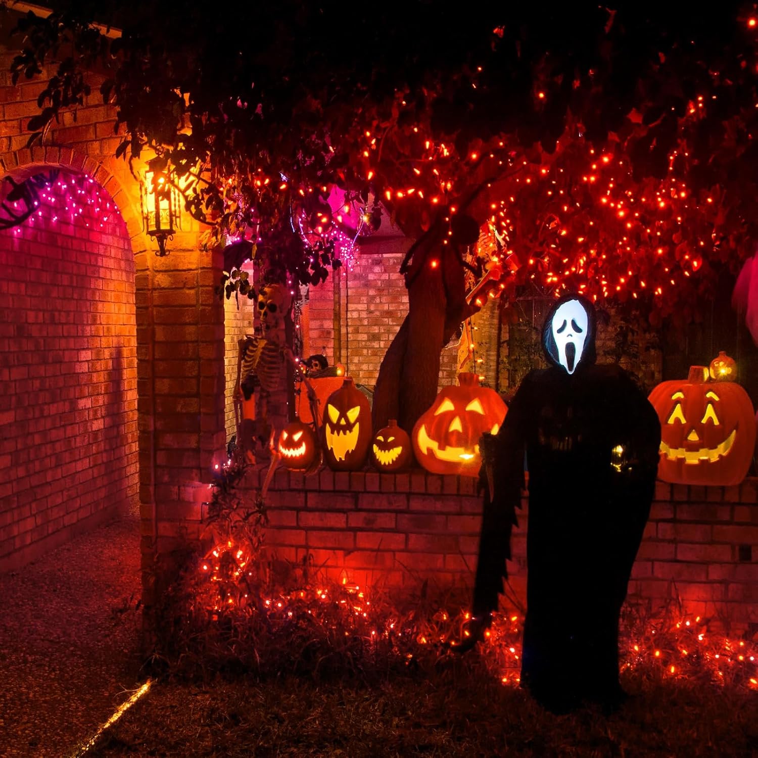 • 8 Lighting Modes: This orange Halloween lights has 8 lighting modes to fit different occasion and mood needs, including combination, in waves, sequential, slo-glo, chasing/flash, slow fade, twinkle/flash, steady on, adjust the lighting modes by pressing the round button on the adapter. The perfect ambient light for family gatherings and holiday celebrations.
