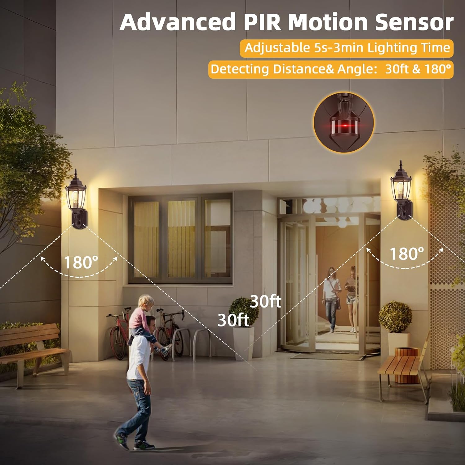 • Classic Style & Wide Application: Our outdoor lights are designed with classic finish, won't look outdated in a few years. It is not only a versatile motion porch light but an excellent addition to brighten up your doorway, backyard, porch, garage etc