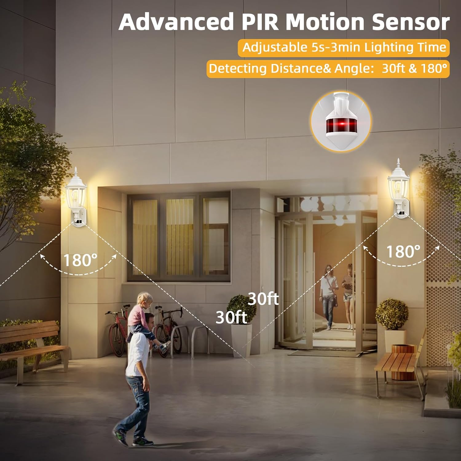 • Wide Detected Range & Compatible With E26 Bulbs: Our motion sensor wall lanterns can be easily triggered by moving people, cars or animals. The detection distance of sensor is from 0 to 30 feet. Bulbs are not included in the package