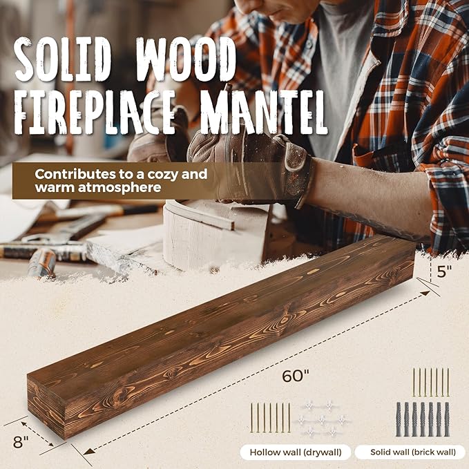 • Easy Installation: Our solid wood mantels come with hidden wood brackets, which can be easily fixed to the wall. Our hollow structure design ensures easy installation. The package includes installation instructions and two sets of accessories, compatible with hollow walls (drywalls) and solid walls (brick walls). For any installation issues, feel free to contact us at any time