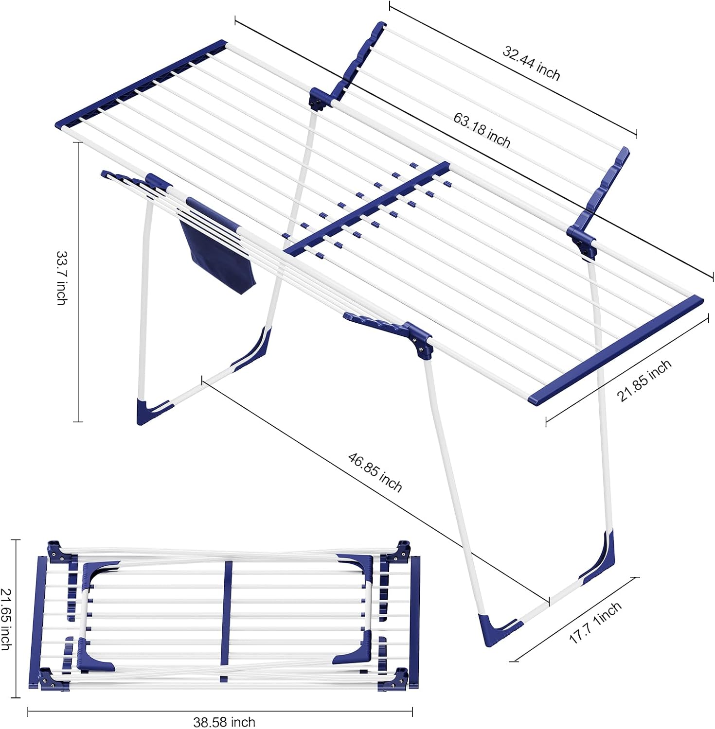 • Expandable Design: Say goodbye to cramped laundry areas! This drying rack features an expandable design which can extend from a compact 38.3 inches to a generous 63.2 inches when unfolded. It provides optimal hanging space for your garments, ensuring efficient drying.