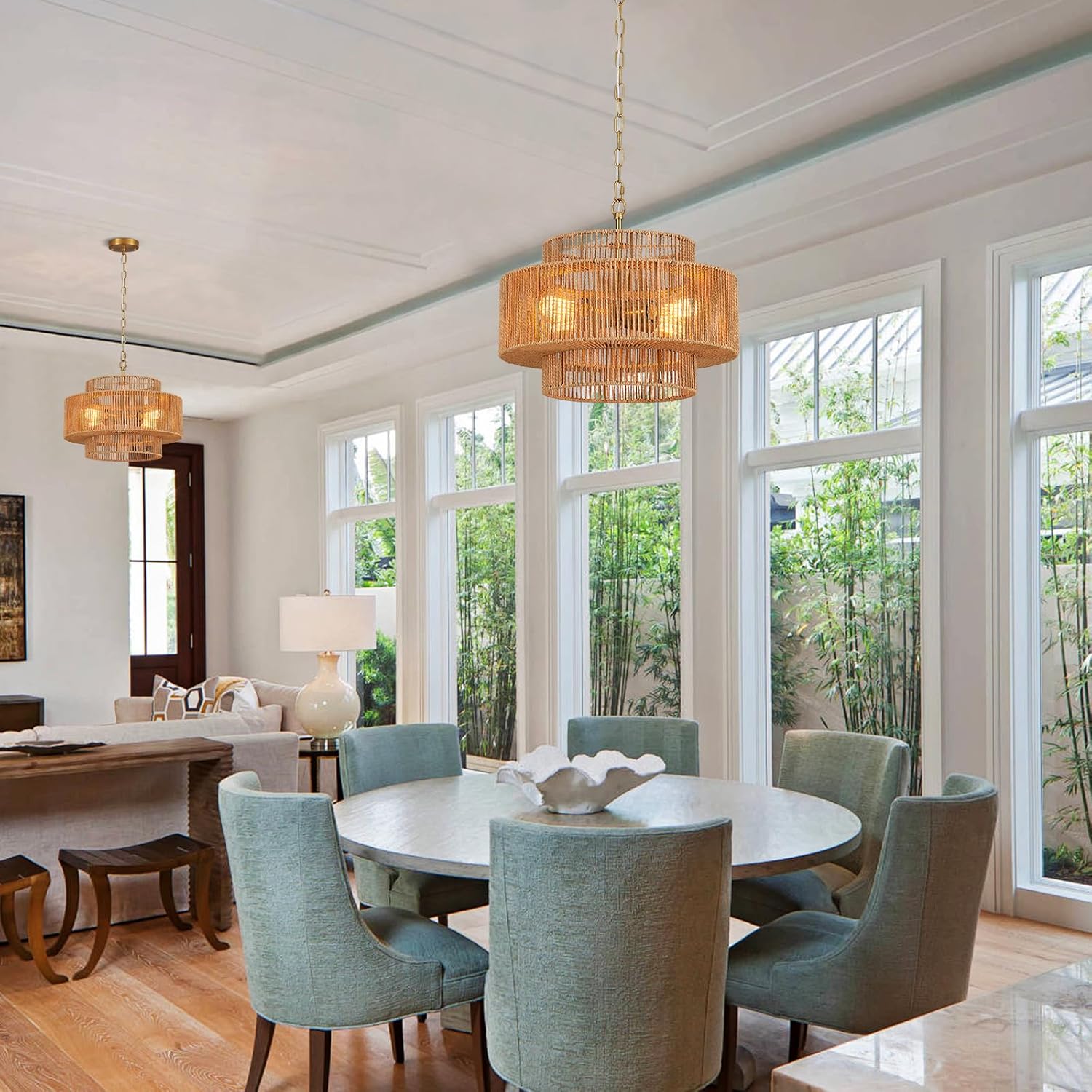 • 【Hand-Woven Rattan Lampshade】The rattan chandelier is a stunning fusion of craftsmanship and design. The rattan weave allows the light to gently filter through, casting beautiful shadows. Experience the artistry of handwoven rattan, which adds a natural touch to your decor.