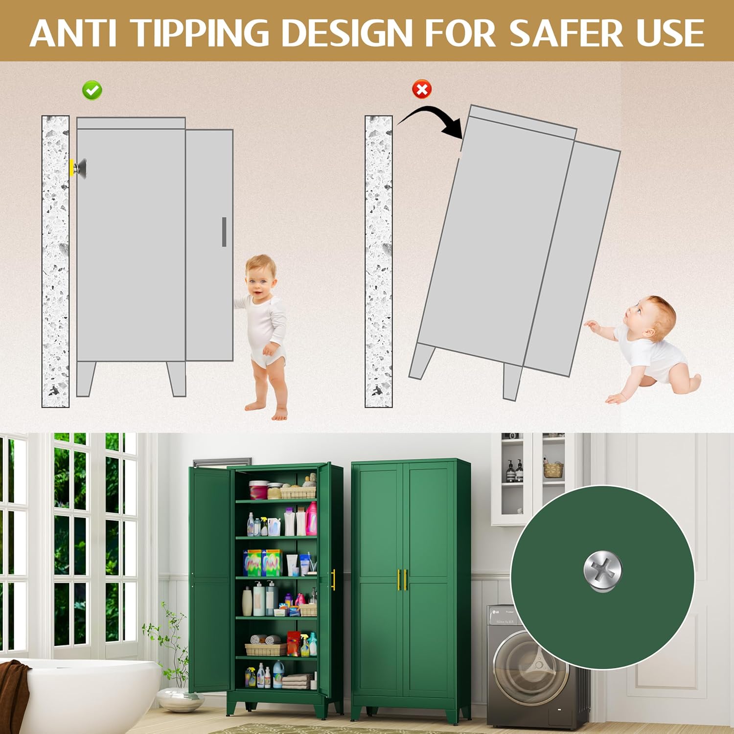 • 『Multifunctional Cabinet』Our 2 door metal cabinet features an freestanding design, which you can use for pantry cabinet, food cabinet, kitchen cabinet, kitchen cupboard, utility cabinet, laundry room cabinets, bathroom cabinet, bedroom wardrobe, bookcase, tool cabinet, file cabinet, appliance cabinet, etc. It will be your good choice for storage and organization