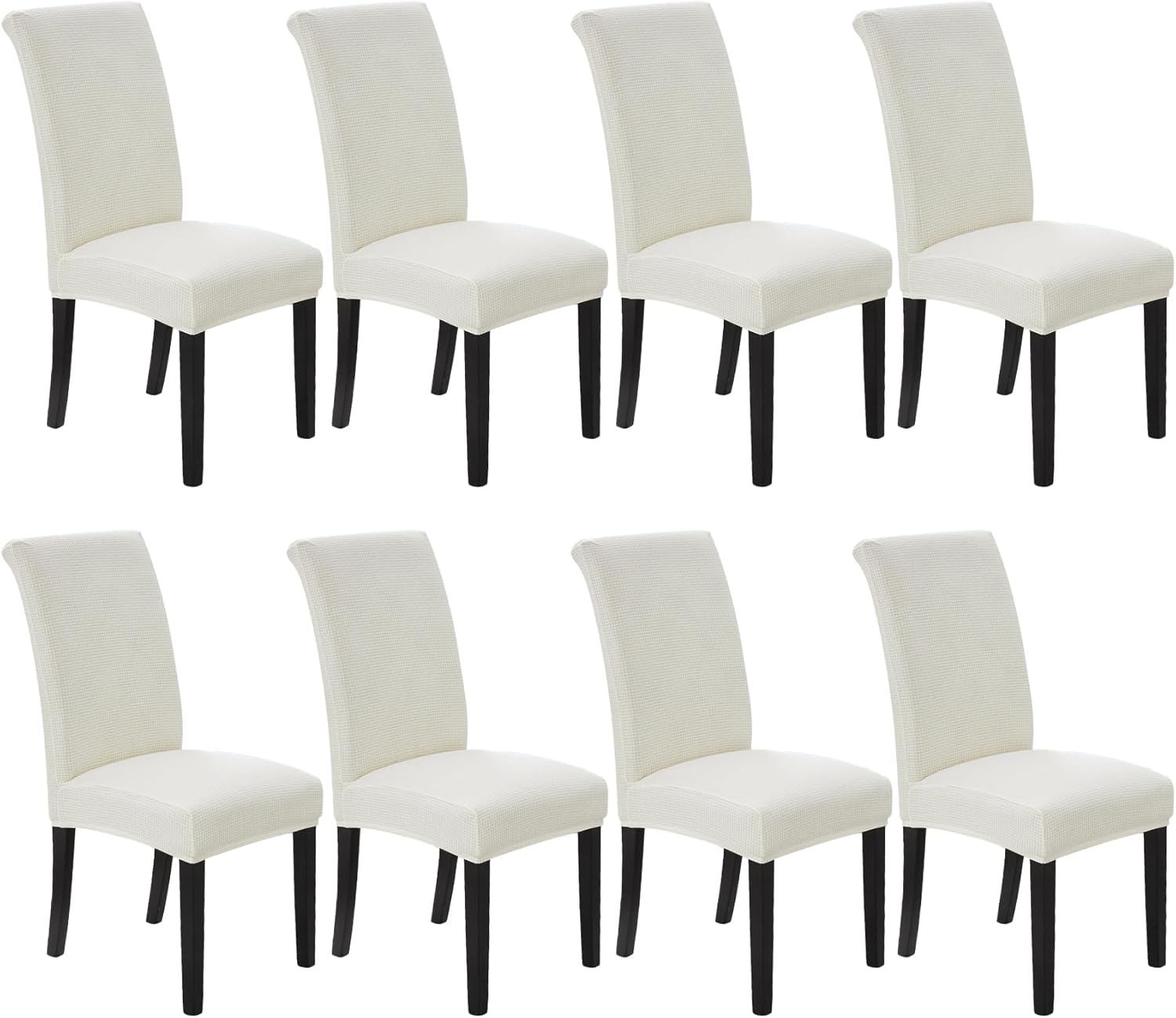 Howhic Stretch Chair Covers for Dining Room Set of 8, Removable Washable Dining Room Chair Covers, Dining Chair Slipcovers Seat Protectors, Great Decor for Home and Banquet (Ivory, 8 Pack)