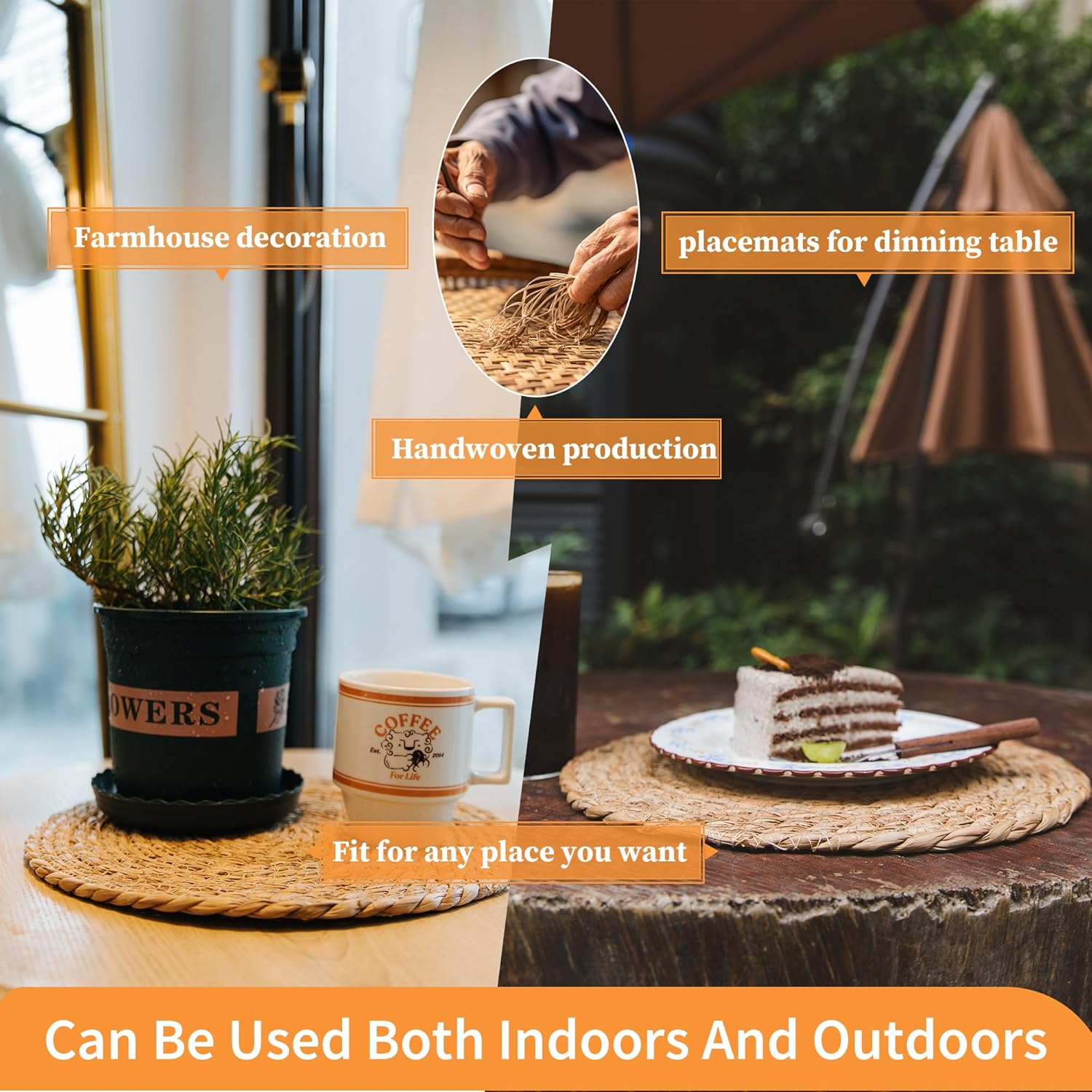 • 【Practicality&Delicate Decoration】: Farmhouse stylish rattan placemats to add more fun vibes to your kitchen table, dinning table,coffee time. A good decoration of your home, bedroom, living room,dining hall, kitchen, and outdoor. Defined Deco woven placemats can be used to including birthday, Easter, Christmas, housewarming, graduation or parties etc.