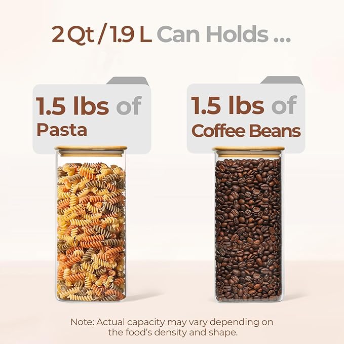 • Versatile Glass Canisters: Experience the versatility of our glass pantry storage containers; ideal for storing cereals, cookie, snacks, nuts, oat, or even can use these glass jars as candy jar, bath salt jar, spice jar, sugar coffee containers