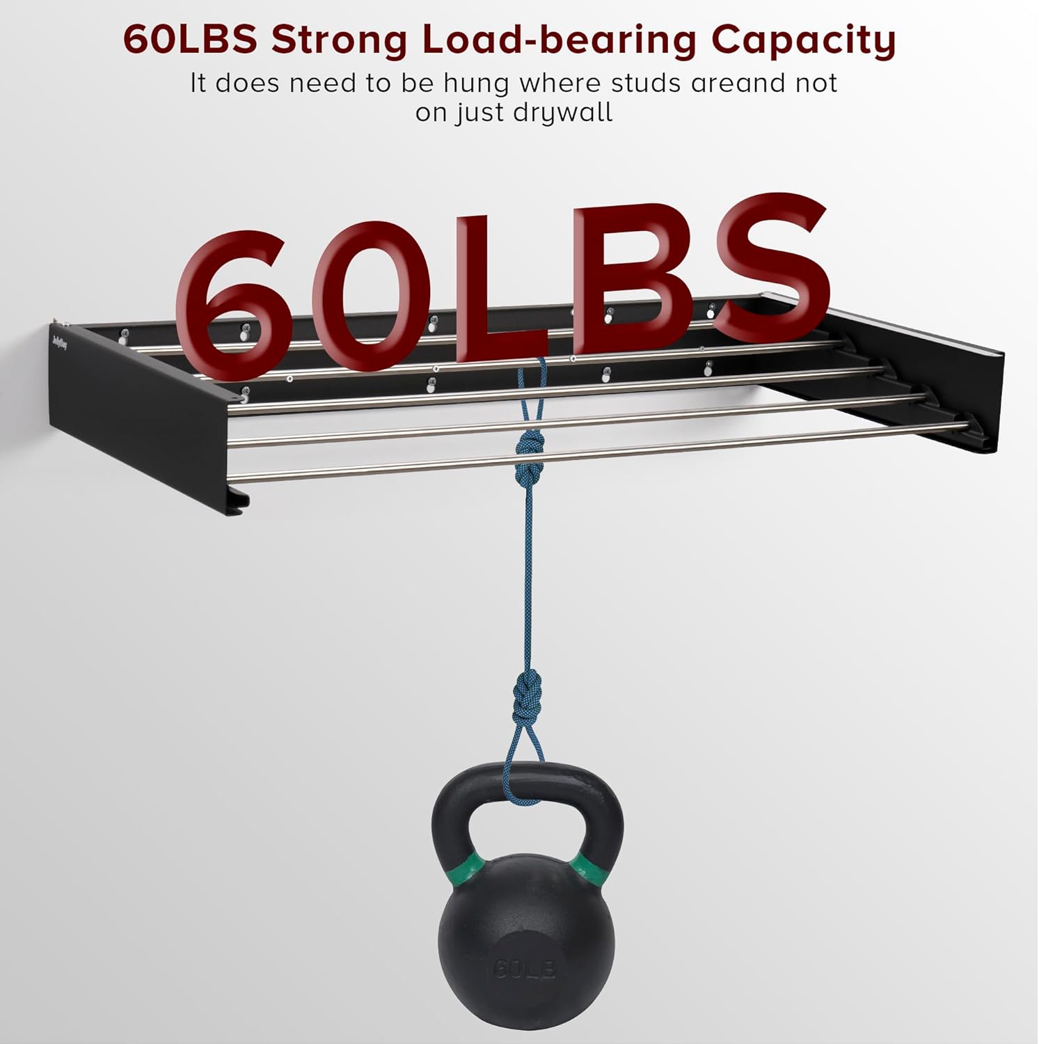Wall Mounted Laundry Drying Rack, Retractable Clothes Drying Rack for Bathroom with Wall Template, 5 Stainless Rods Heaving 60 lb Capacity (Black, 31.5")