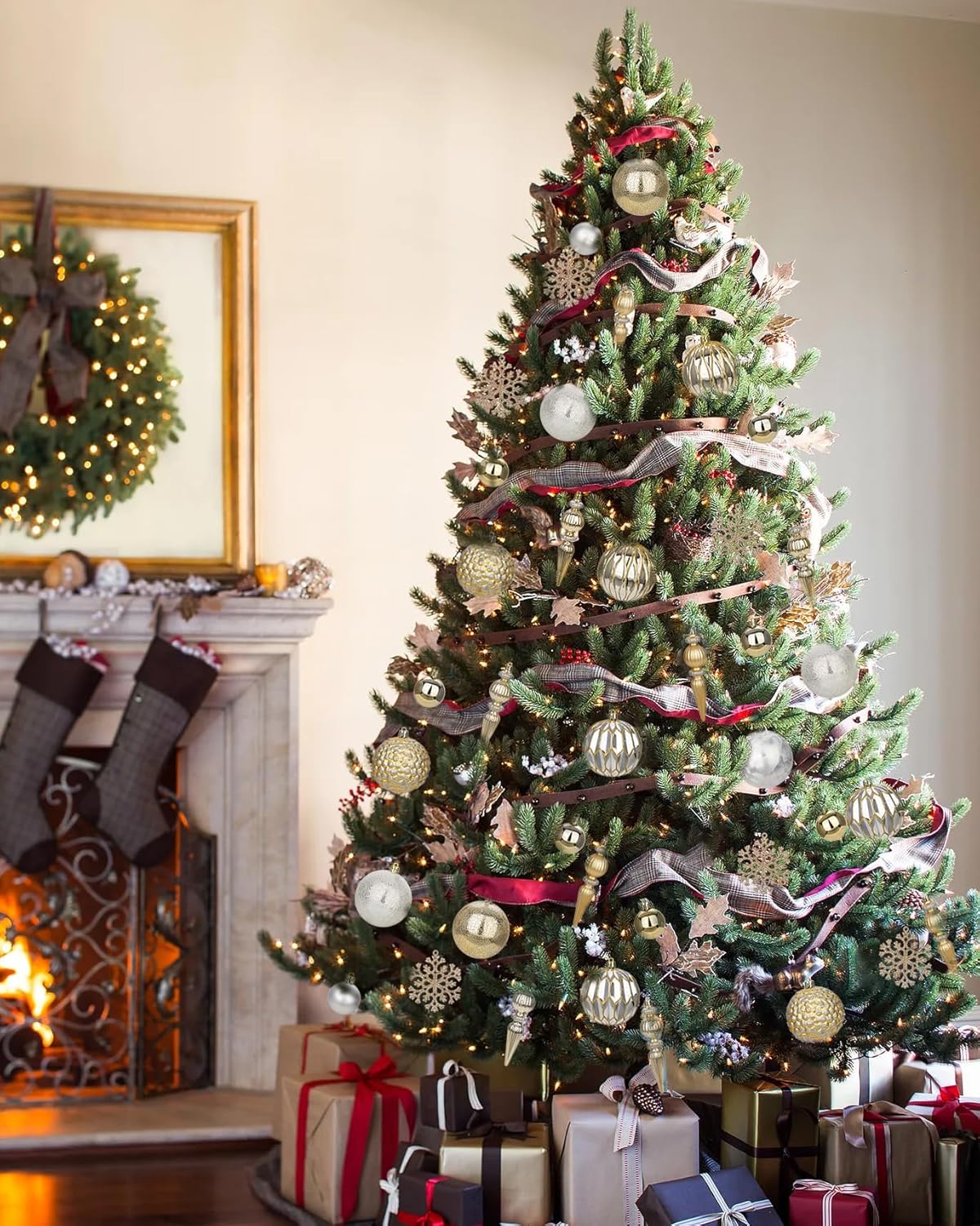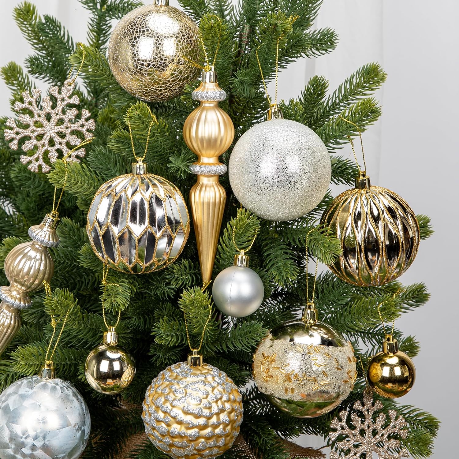 • COMPLETE 92-PIECE SET – Each Christmas ornament set includes 92 carefully selected pieces in various sizes and designs, including classic round balls, intricate finials, glittery snowflakes, and mini baubles. This complete collection allows you to decorate your entire Christmas tree with a perfectly coordinated look