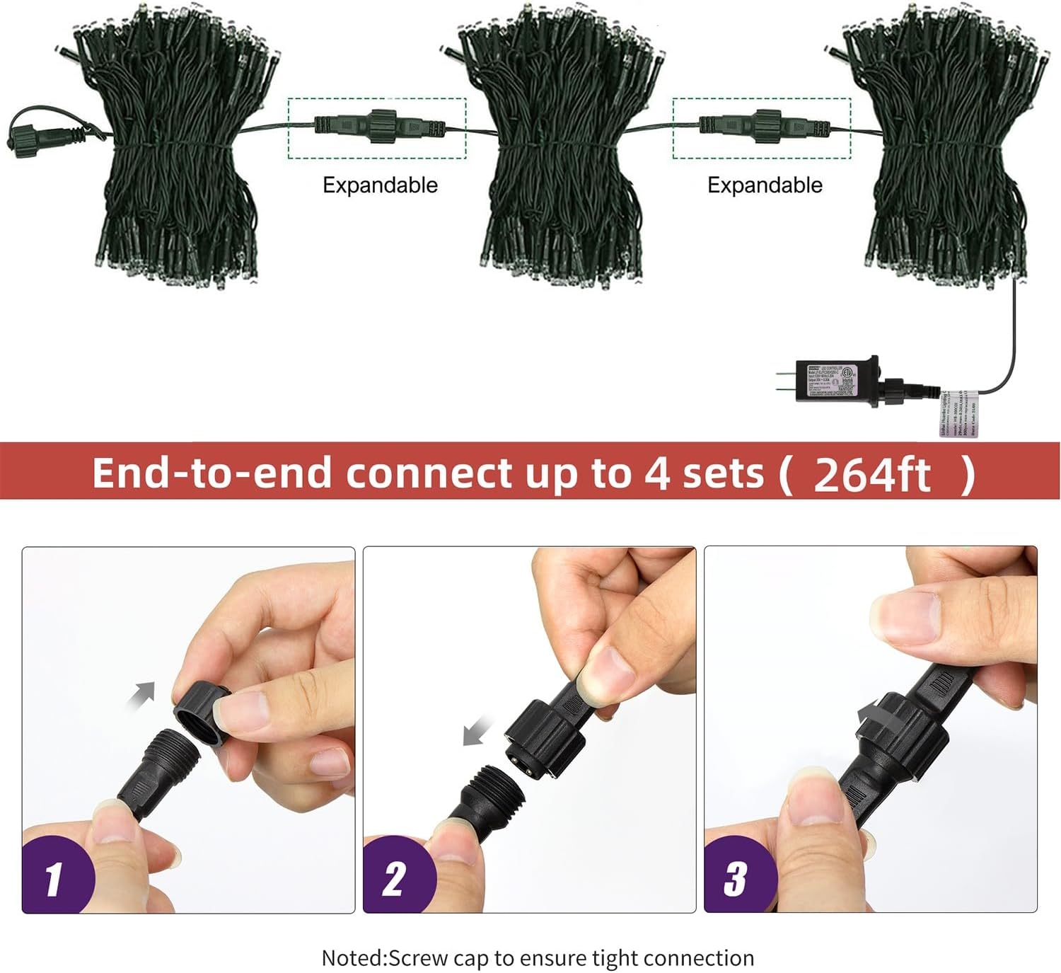 • 66ft Christmas Decorations string lights: With 200 Red & White individual LED bulbs. Each green wire lights has end-to-end connection, you can connect up to 4 sets together to illuminate a wider range. Fit different occasions, moods, feelings, holidays, festivals, anniversaries, etc